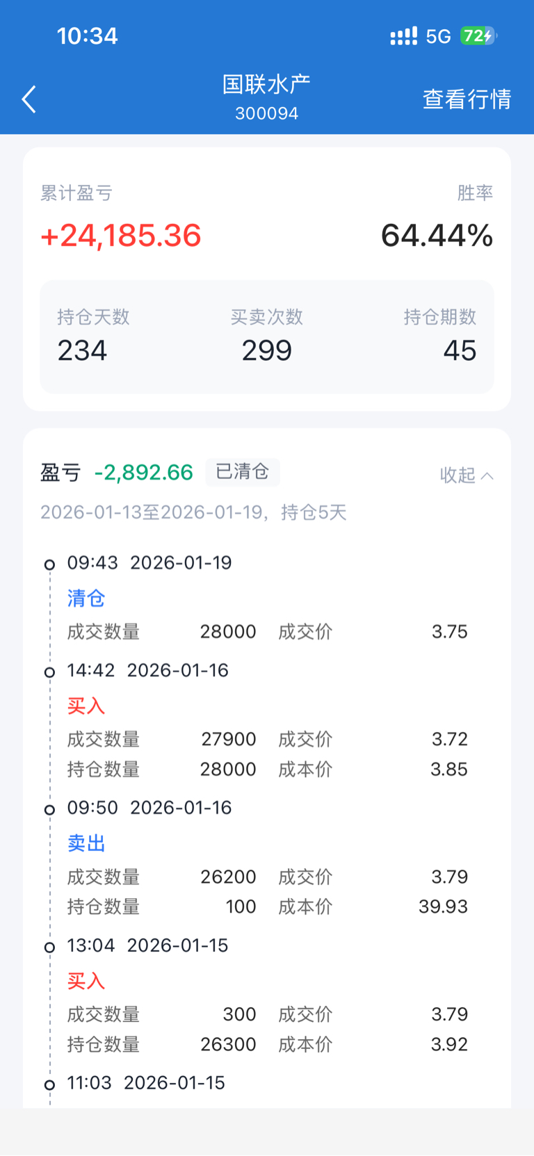 $国联水产(SZ300094)$ 一天刚好100元我清仓了!留下的发财
