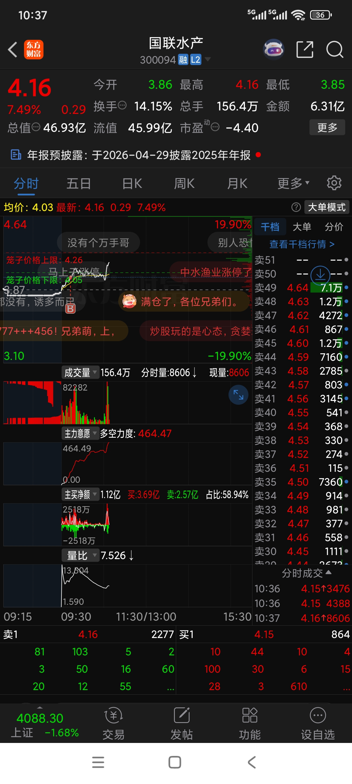 $国联水产(SZ300094)$ 就这压单,你怕个毛。