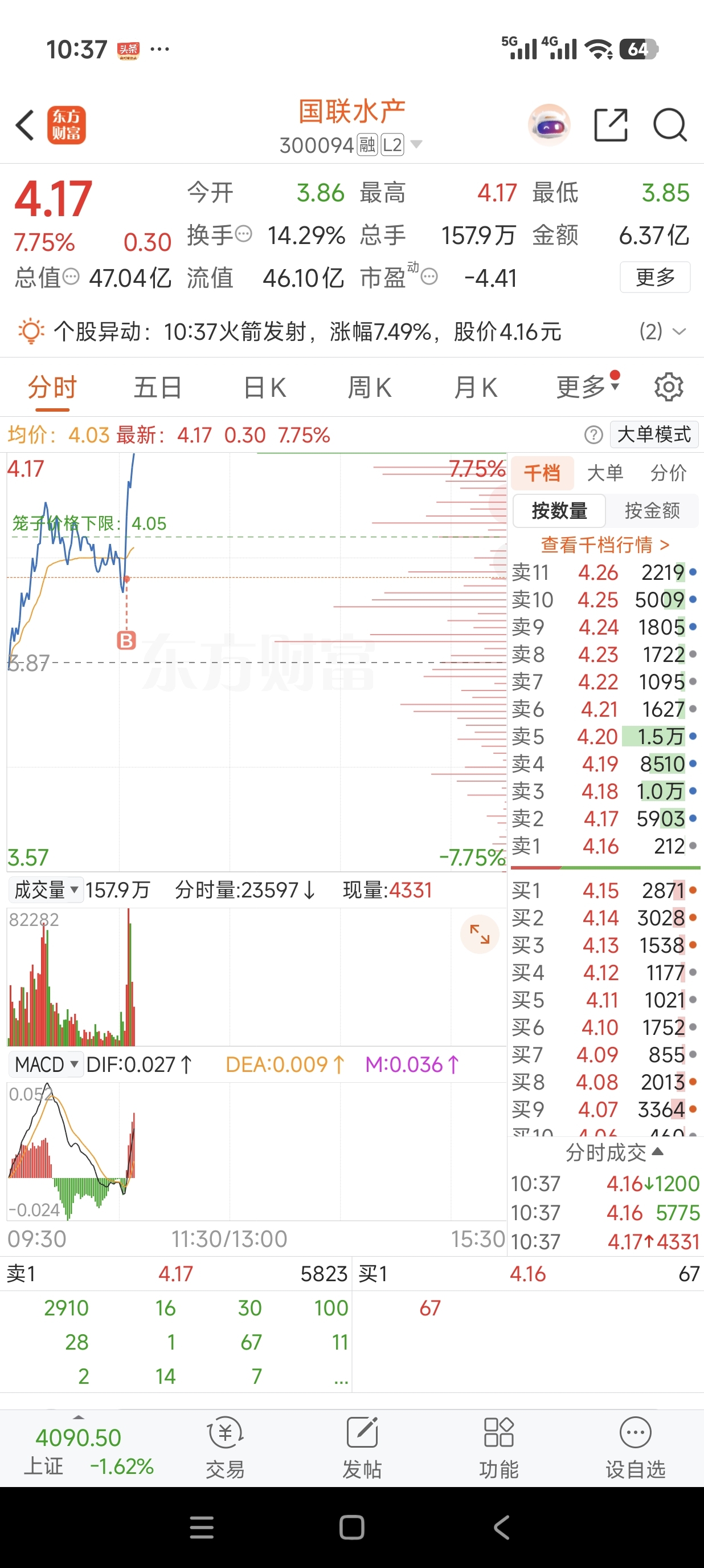 盯着中水渔业,他一上板,果断买进。