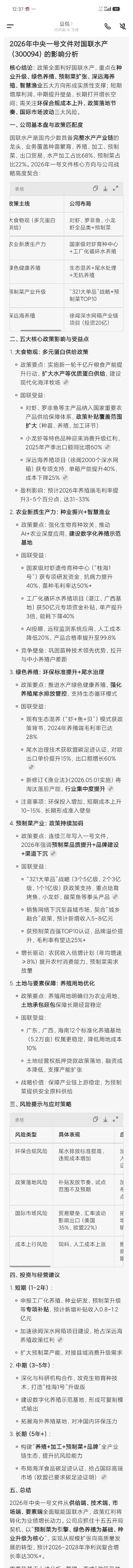 4. 国联水产:预制菜与水产养殖龙头,布局深海养殖与加工技术,受益于一号文件对水产产业升级的支持,订单增长明确,业绩具备周期弹性。