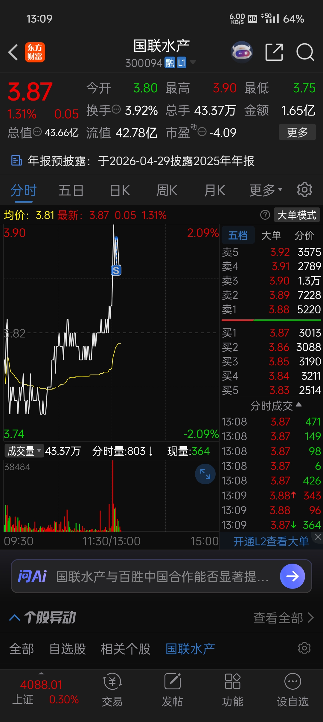 $国联水产(SZ300094)$ 先T一波,这次3.9不是高点。