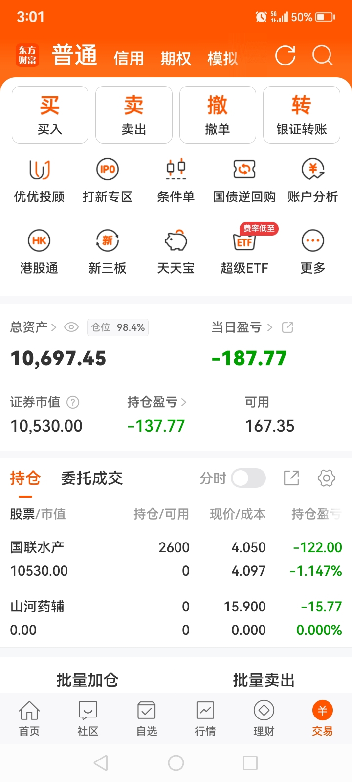 $国联水产(SZ300094)$ 1.18万实盘第22天