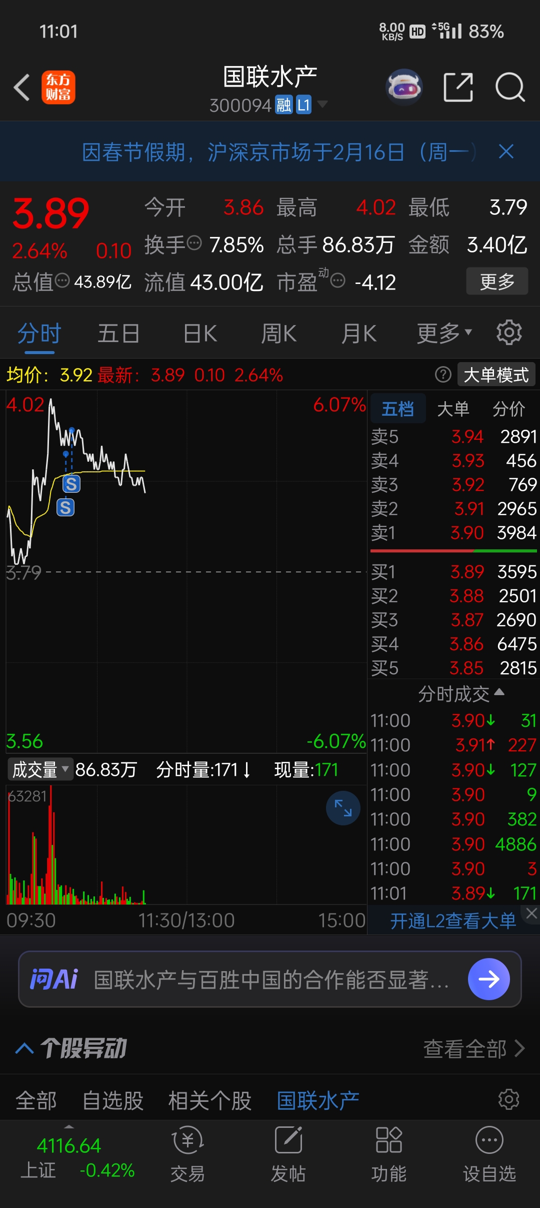 $国联水产(SZ300094)$ 昨天逆势加仓,今天减持。下午尾盘再说。应该不会加仓了。轻仓看戏。过年咯
