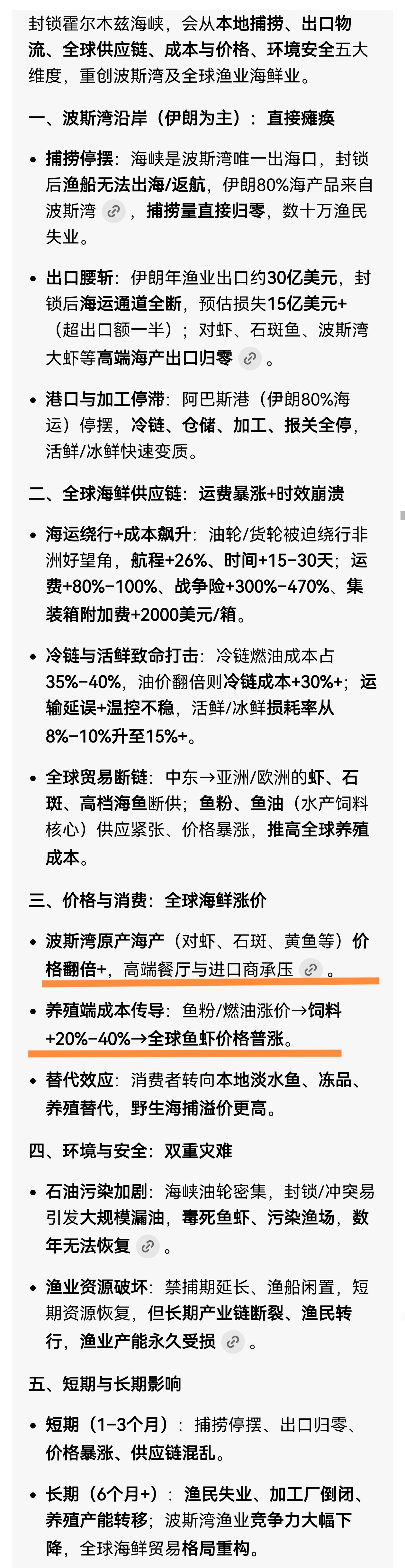 封锁霍尔木兹海峡对渔业、海鲜业有什么影响?