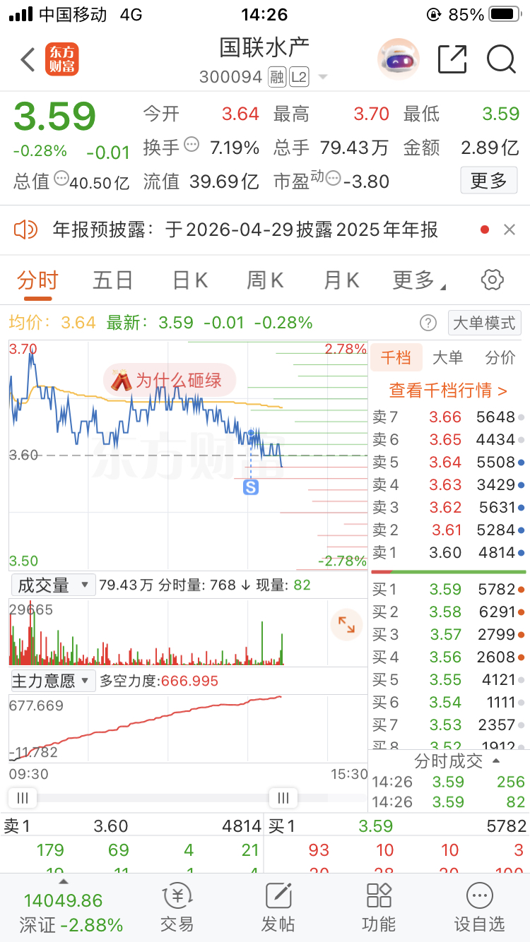 $国联水产(SZ300094)$ 跑了,没有亏也没有赚。