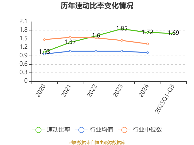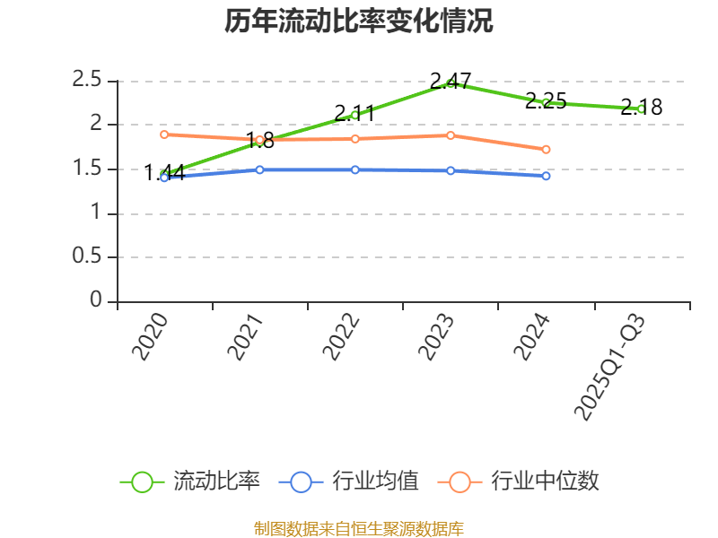 2025年前三季度,公司流动比率为2.18,速动比率为1.69。