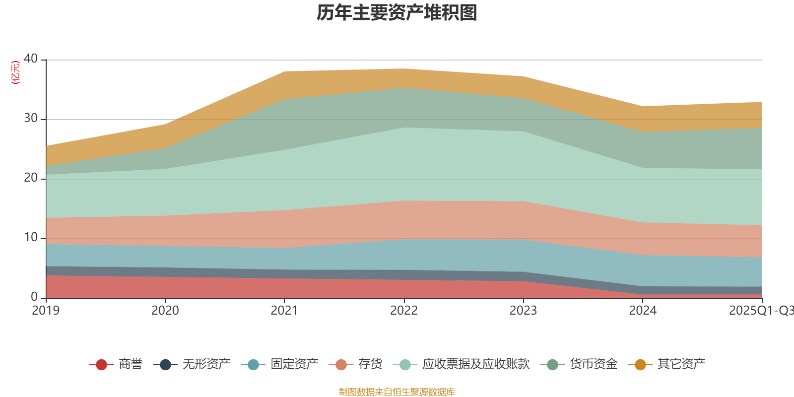 资产重大变化方面,截至2025年三季度末,公司货币资金较上年末增加16.39%,占公司总资产比重上升2.58个百分点;预付款项较上年末增加267.04%,占公司总资产比重上升1.41个百分点;固定资产较上年末减少6.05%,占公司总资产比重下降1.33个百分点;应收款项融资较上年末减少39.03%,占公司总资产比重下降1.11个百分点。