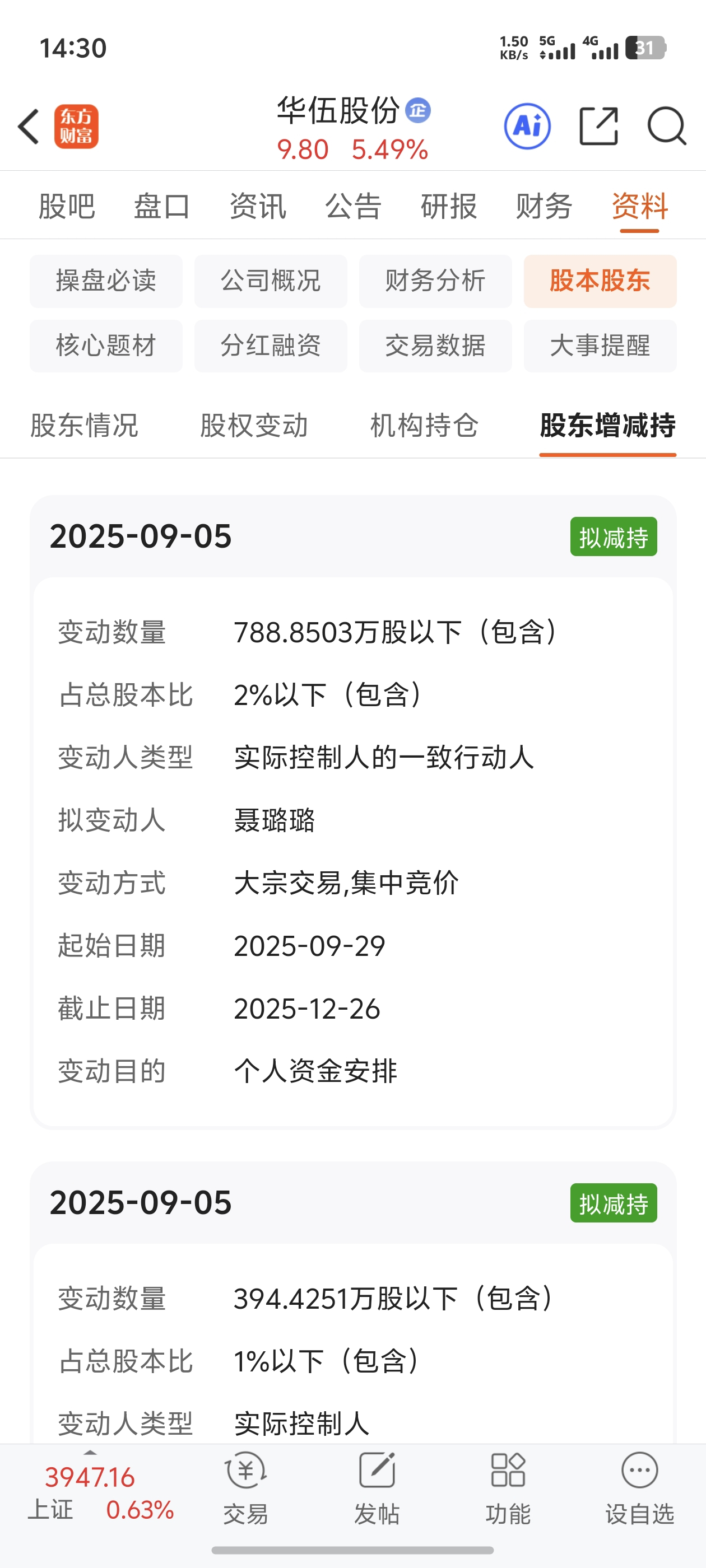 $华伍股份(SZ300095)$ 估计好多人忘记了减持吧。
