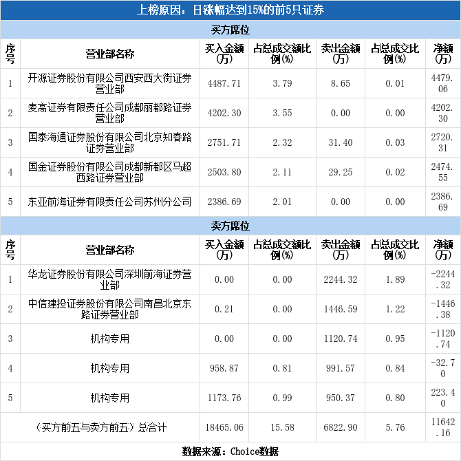 深交所2025年12月4日交易公开信息显示,华伍股份因属于日涨幅达到15%的前5只证券而登上龙虎榜。华伍股份当日报收11.24元,涨跌幅为19.96%,换手率32.12%,振幅19.64%,成交额11.85亿元。