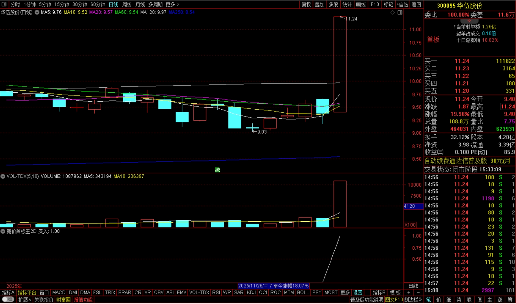 $华伍股份(SZ300095)$ 龙抬头竞价首板王战法,做股票不要追高更不要打板,想实现稳定复利就要做低位竞价首板,龙抬头竞价首板王选股软件,开盘前竞价选股不做马后炮,买在低位3个点左右,博当天或者次日溢价甚至首板涨停!龙抬头竞价首板王专门抓20厘米首板涨停!