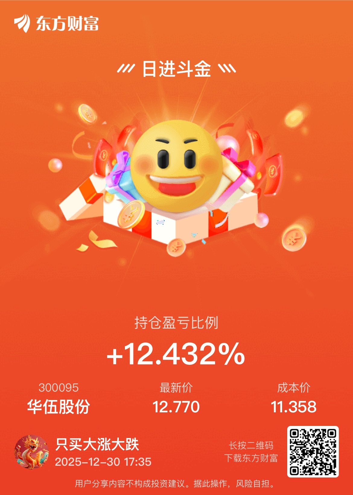 $华伍股份(SZ300095)$ 无语了 早上睡过了,11.4附近没有加仓