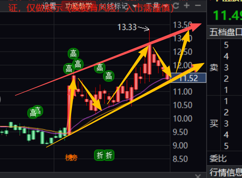 这是我昨天画的图,没敢往这里发,今天果然在下轨获得强支撑。这股会涨几天,想要涨停的就洗洗睡吧!一旦涨停了行情就结束了