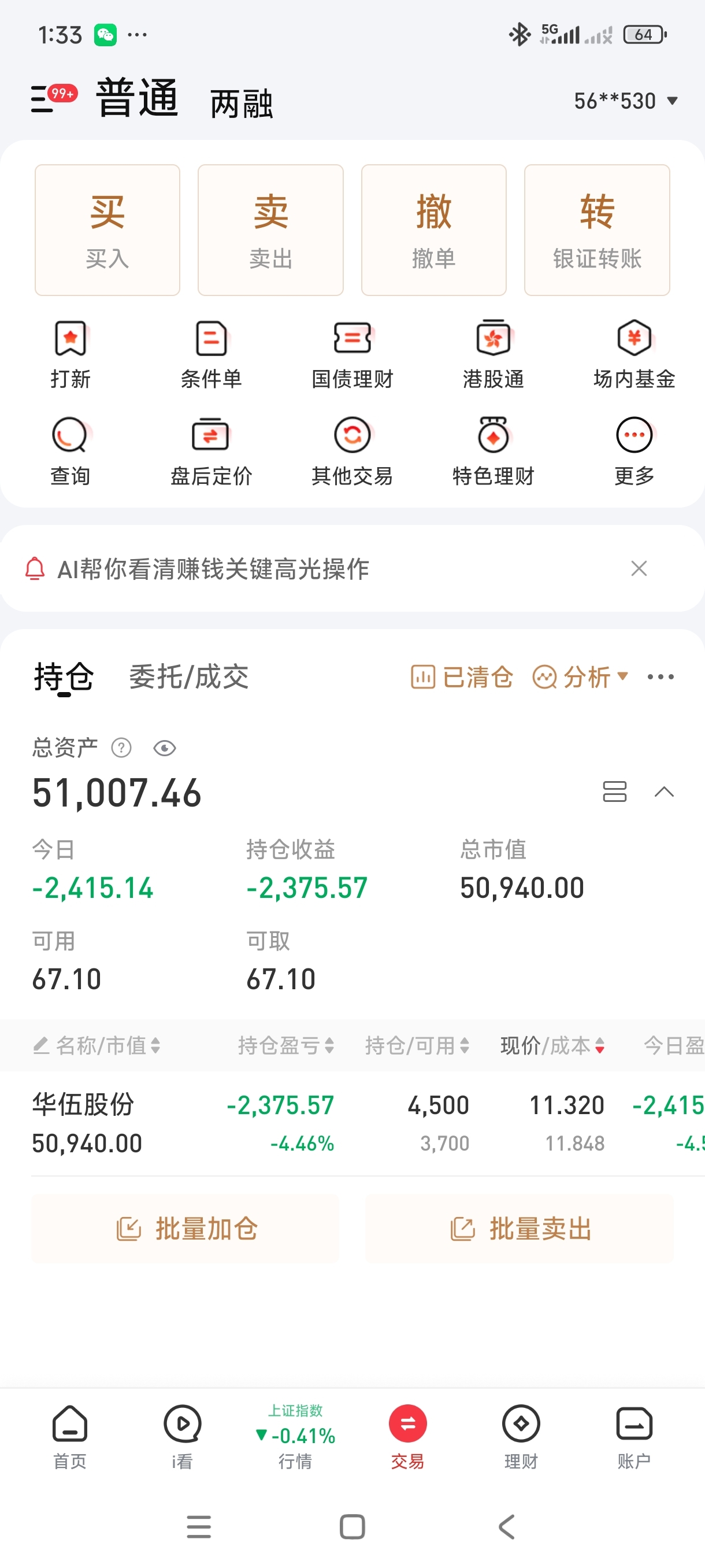 $华伍股份(SZ300095)$ 今年还盈利了1000块