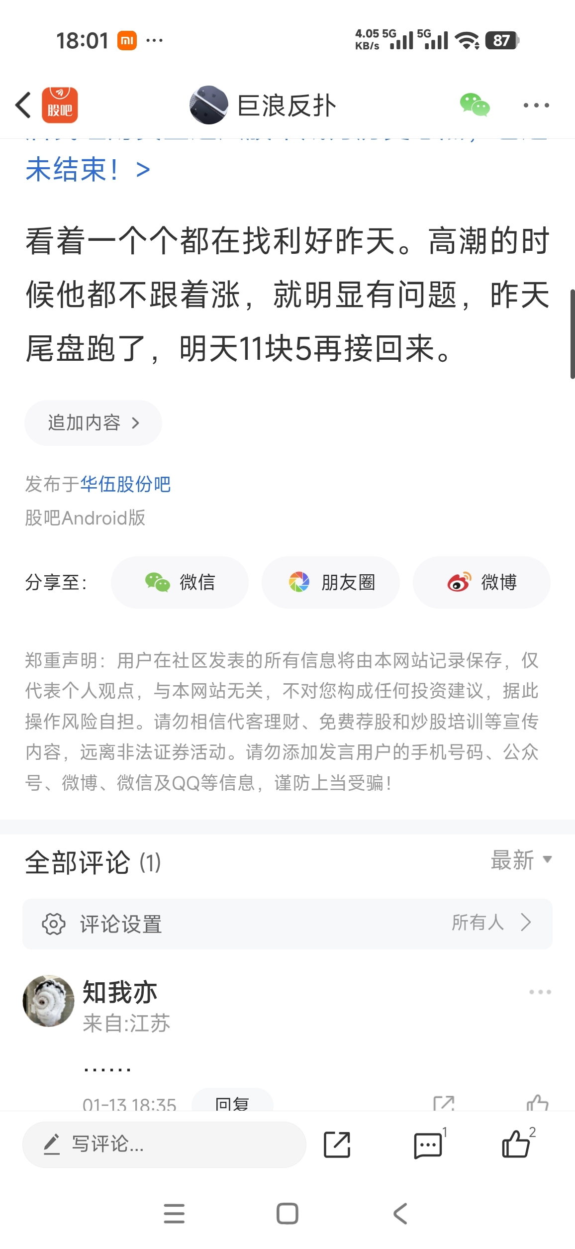 温馨提示: 1.根据《证券法》规定,禁止编造、传播虚假信息或者误导性信息,扰乱证券市场;2.用户在本社区发表的所有资料、言论等仅代表个人观点,与本网站立场无关,不对您构成任何投资建议。用户应基于自己的独立判断,自行决定证券投资并承担相应风险。《东方财富社区管理规定》