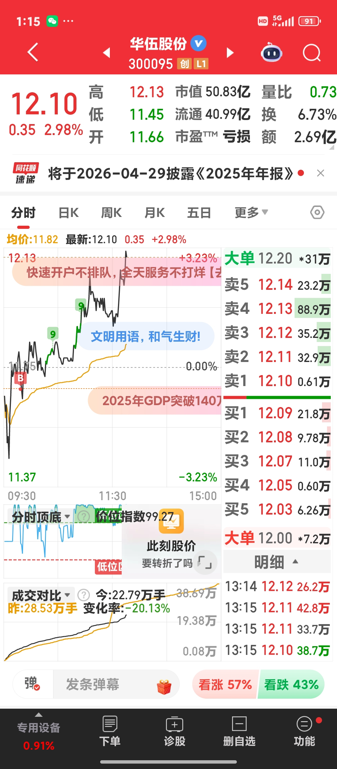 $华伍股份(SZ300095)$ 卖飞了百纳千成换的你,要争气哟,要不今天十几个点收益,希望你后来者居上