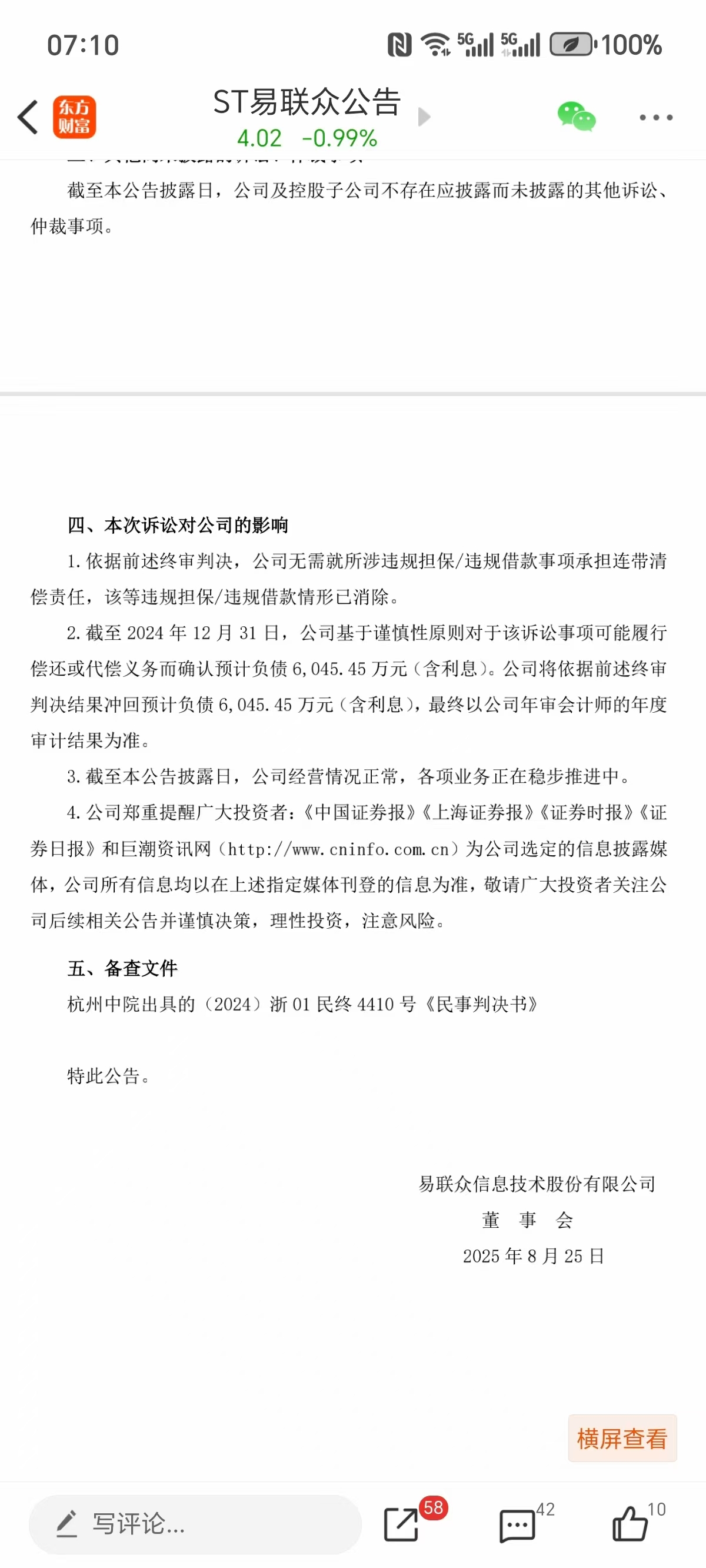 刚刚判决宣布易联众原法人张希搞的一系列担保虽然加盖了一联动公司的公章,但是联众公司不需承担任何责任。