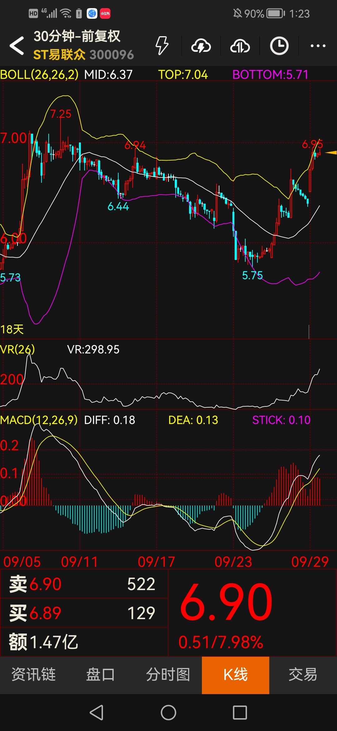 A股江湖风急浪高,ST易联众却演出一场“逆流跃龙门”的好戏。股价从1.90元平地惊雷,直冲7.26元云霄,复又俯冲至5.75元深谷,正当空头得意之际,竟以一招“U型反转深V压空”破局,连续两日K线如蛟龙摆尾,硬生生在暴虐的大盘阴霾中划出一道金光!