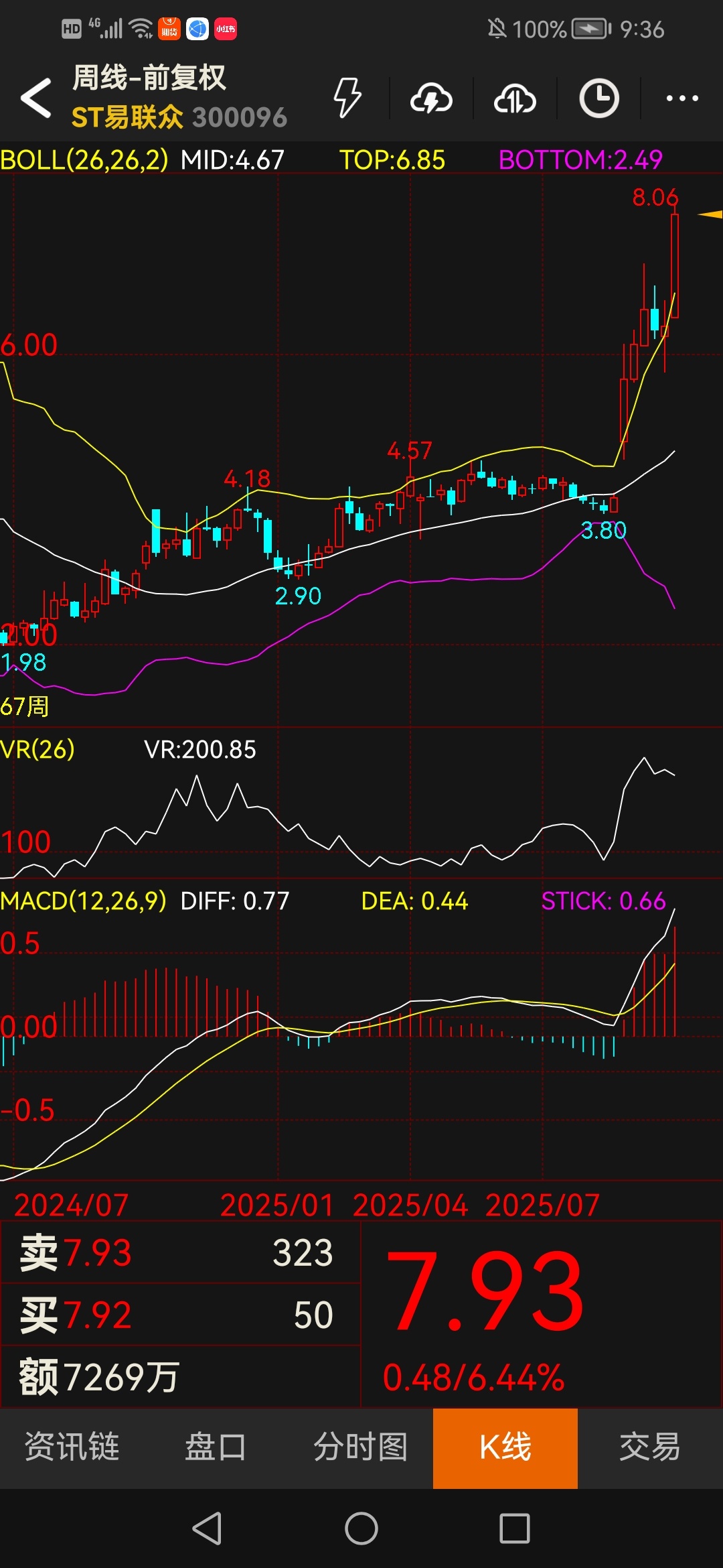 从财务博弈到生态卡位 周线图上股价从2.49元布林下轨强势突破至8.06元,多空在7.9元区域激烈交锋;5分钟级别VR值高达245,揭示着最微观层面的资金躁动。这些技术信号恰是市场认知割裂的写照:短线客见波动而畏怯 ,洞察者见生态而布局。公司以医保数据为基石,辐的大健康、电子病历、互联网医院等业务矩阵,每条赛道都蕴藏千亿空间。这种“系统级嵌入”形成的壁垒,已非资本所能简单复制,而是政策与时间共同铸就的垄断性生态位。