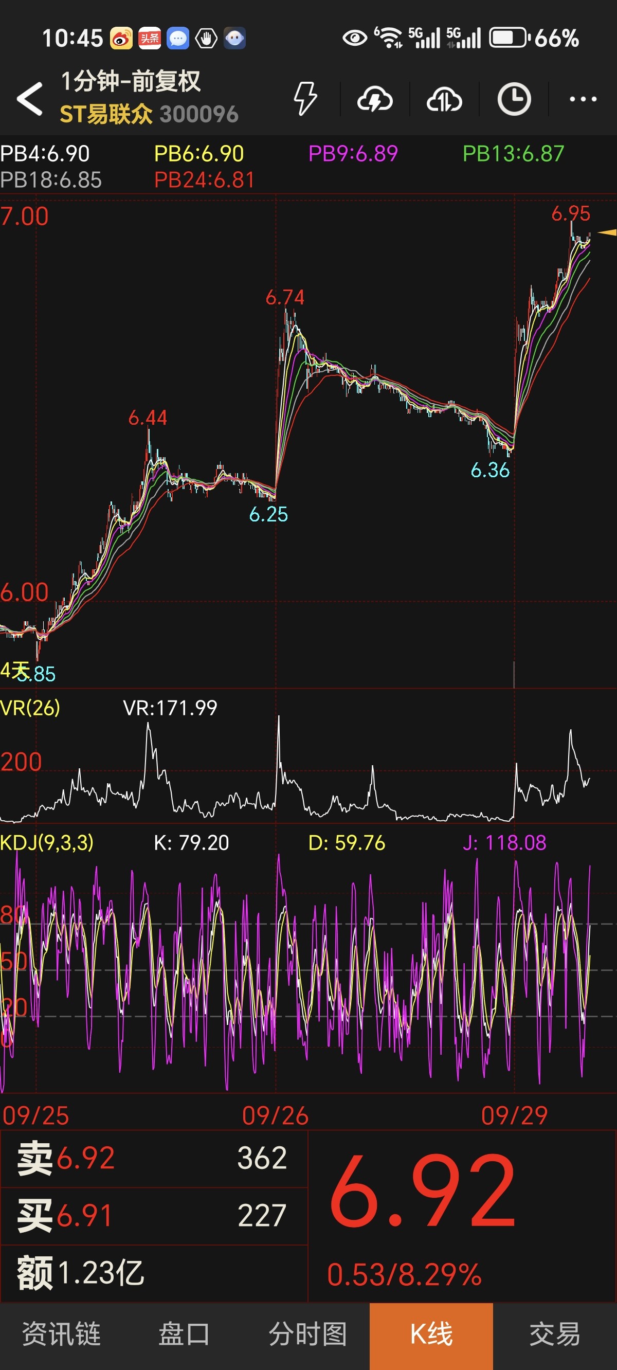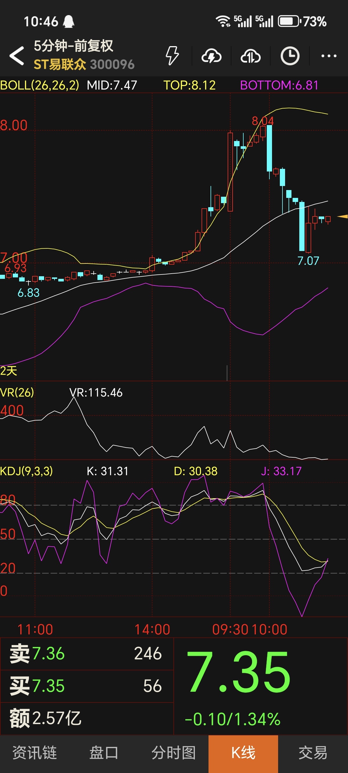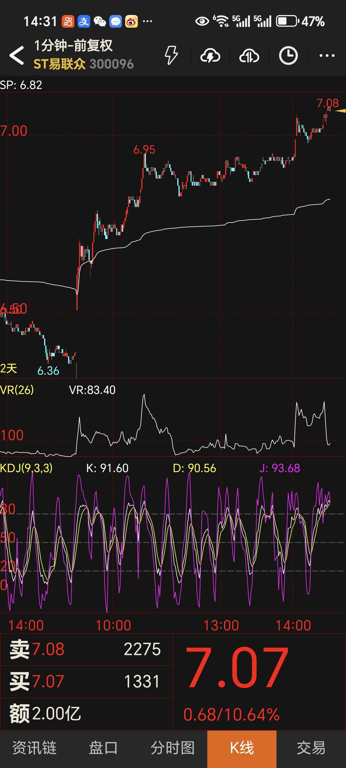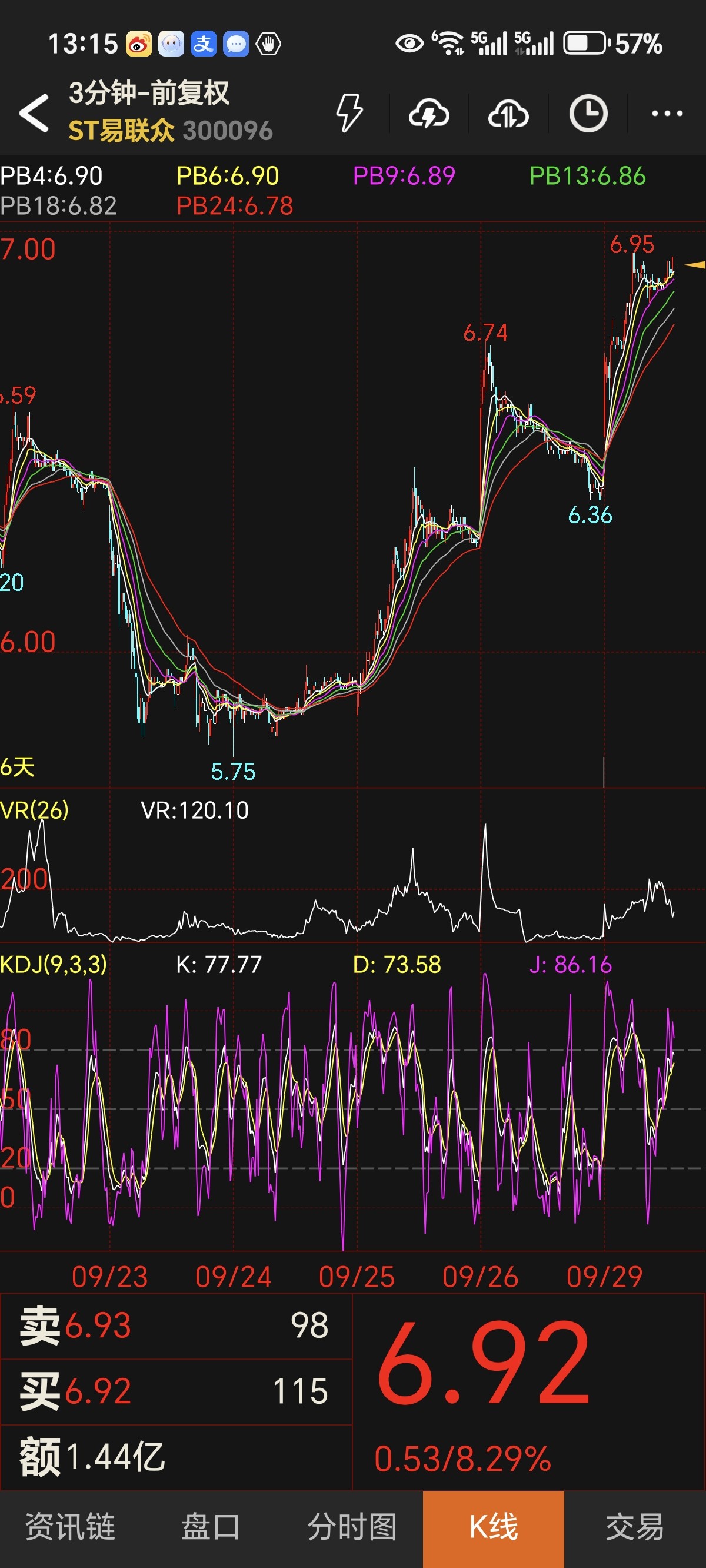 日线级别,股价稳稳站在布林带中轨(6.38元)之上,长期多头格局完好无损。VR值157.23虽从高位回落,仍远高于100分水岭,印证资金换手而非撤离。5分钟级别,股价在布林带下轨(6.81元)获强力支撑,微观层面的躁动抛压已充分释放。