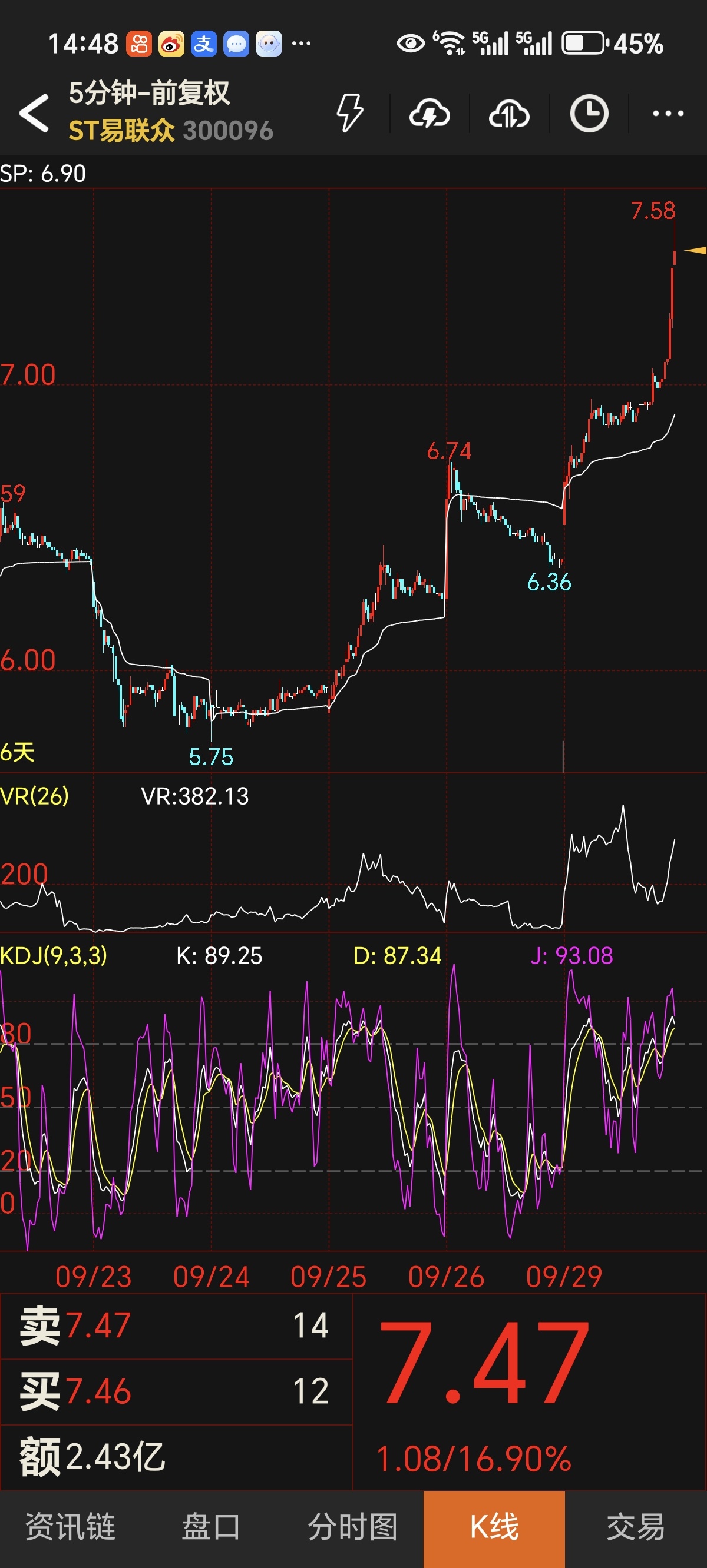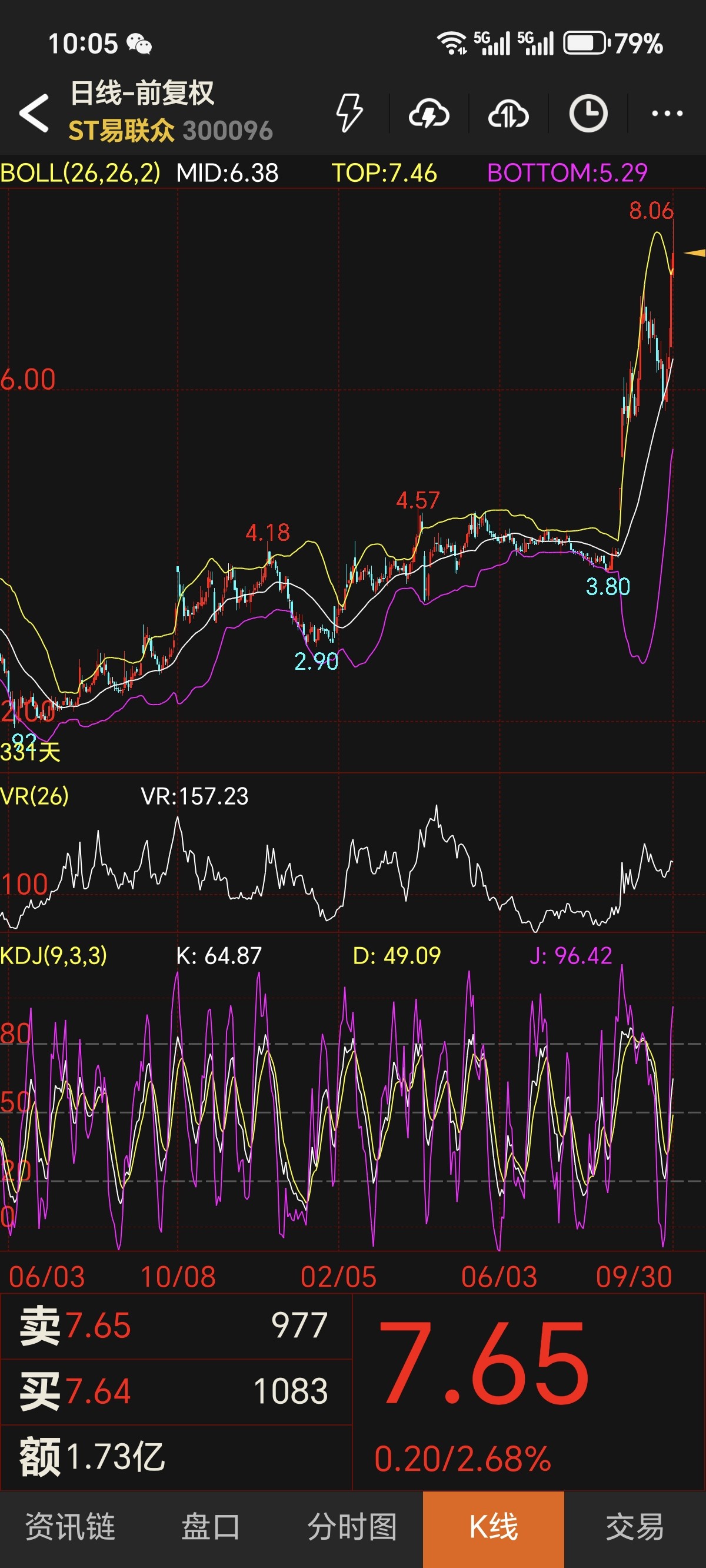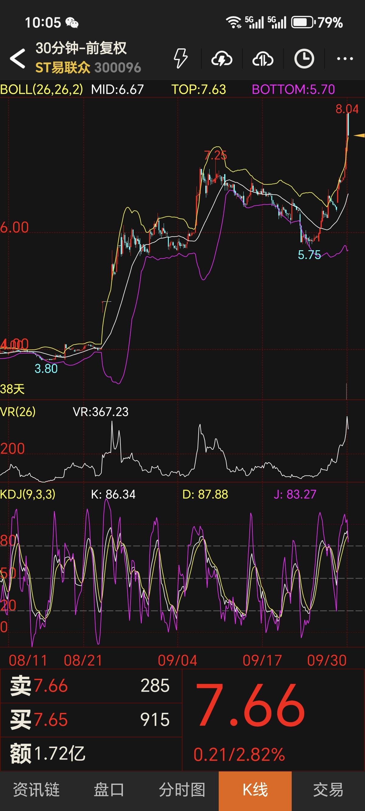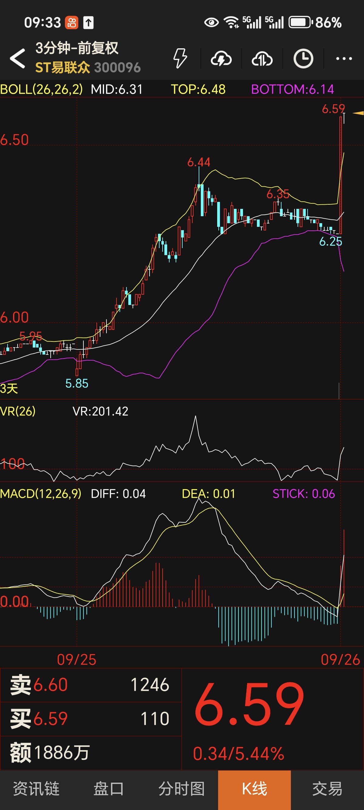 日线级别,股价稳稳站在布林带中轨(6.38元)之上,长期多头格局完好无损。VR值157.23虽从高位回落,仍远高于100分水岭,印证资金换手而非撤离。5分钟级别,股价在布林带下轨(6.81元)获强力支撑,微观层面的躁动抛压已充分释放。