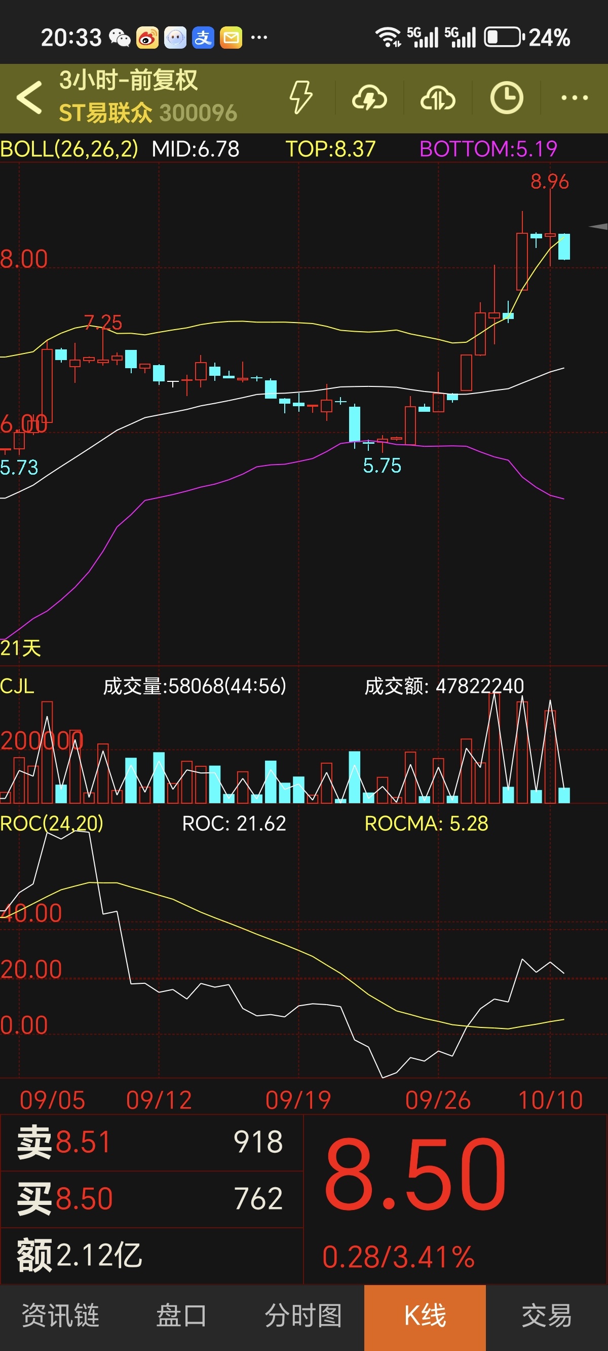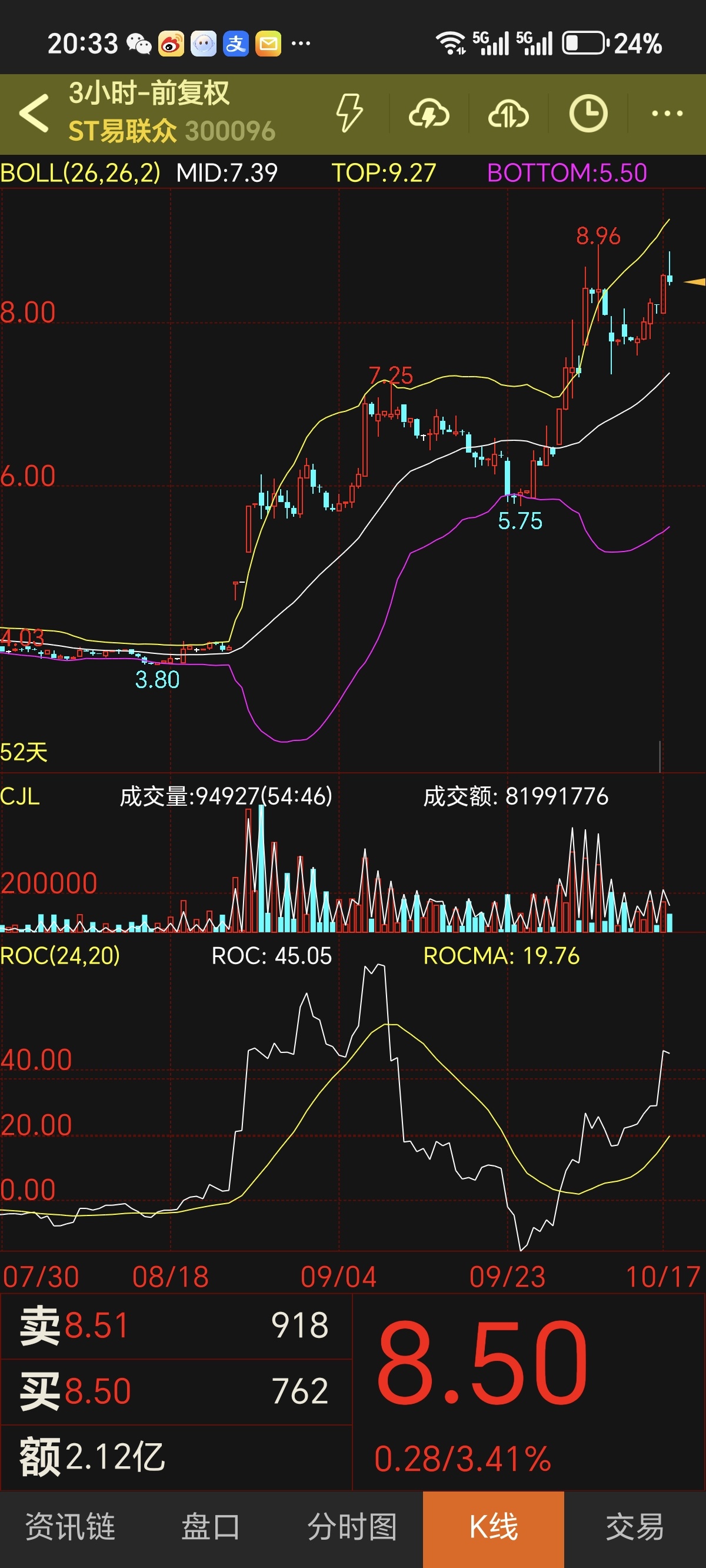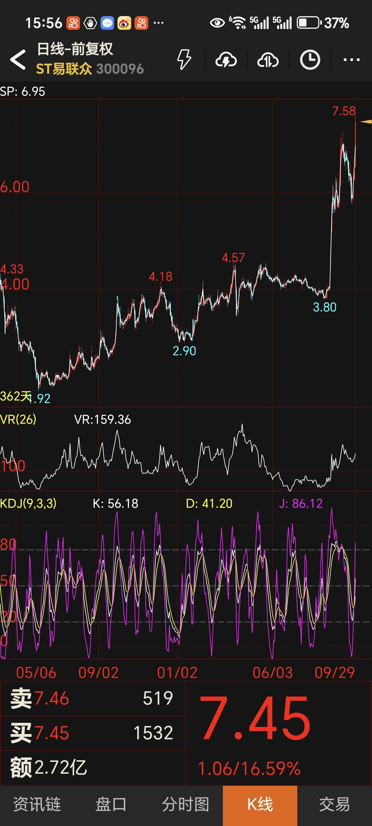 A股江湖风急浪高,ST易联众却演出一场“逆流跃龙门”的好戏。股价从1.90元平地惊雷,直冲7.26元云霄,复又俯冲至5.75元深谷,正当空头得意之际,竟以一招“U型反转深V压空”破局,连续两日K线如蛟龙摆尾,硬生生在暴虐的大盘阴霾中划出一道金光!