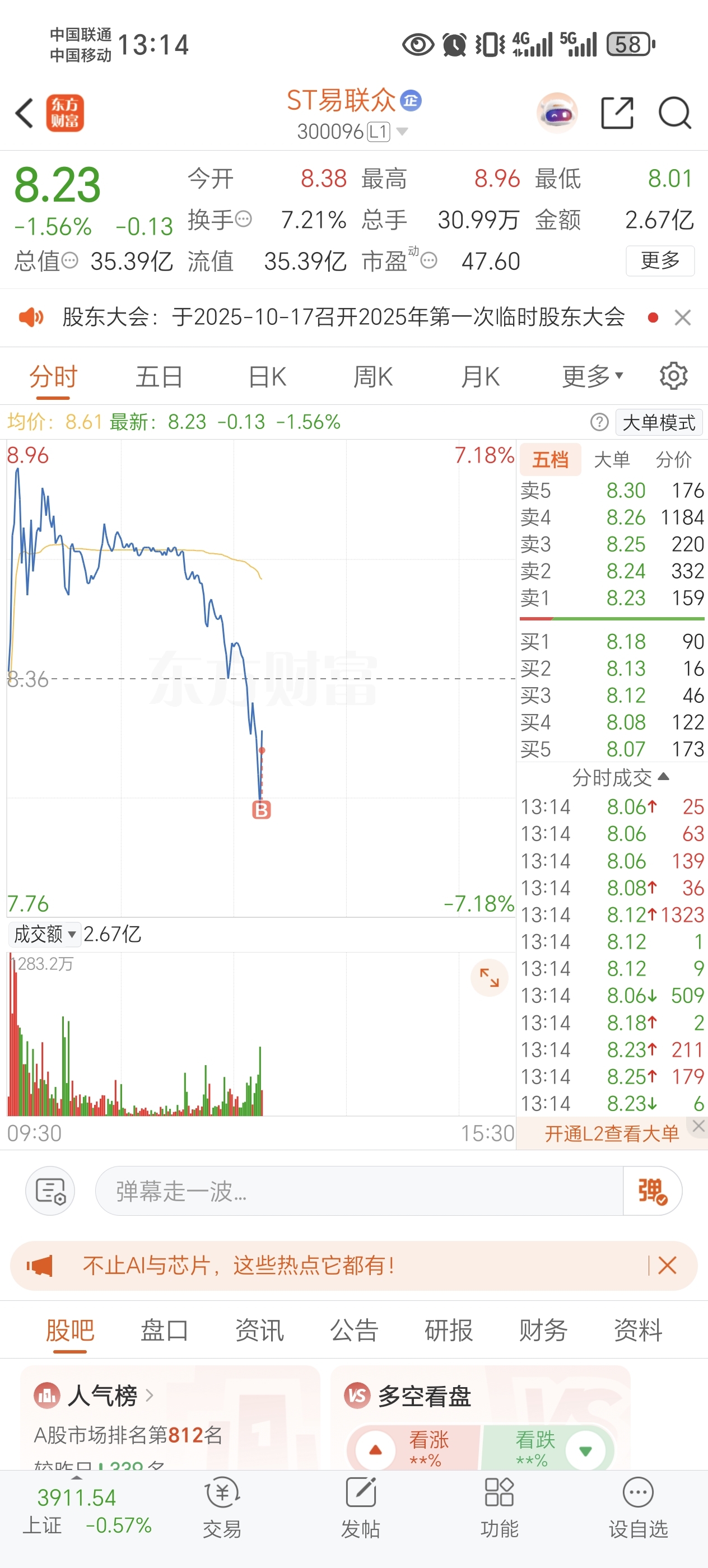 $ST易联众(SZ300096)$ 关机睡觉,富贵在天