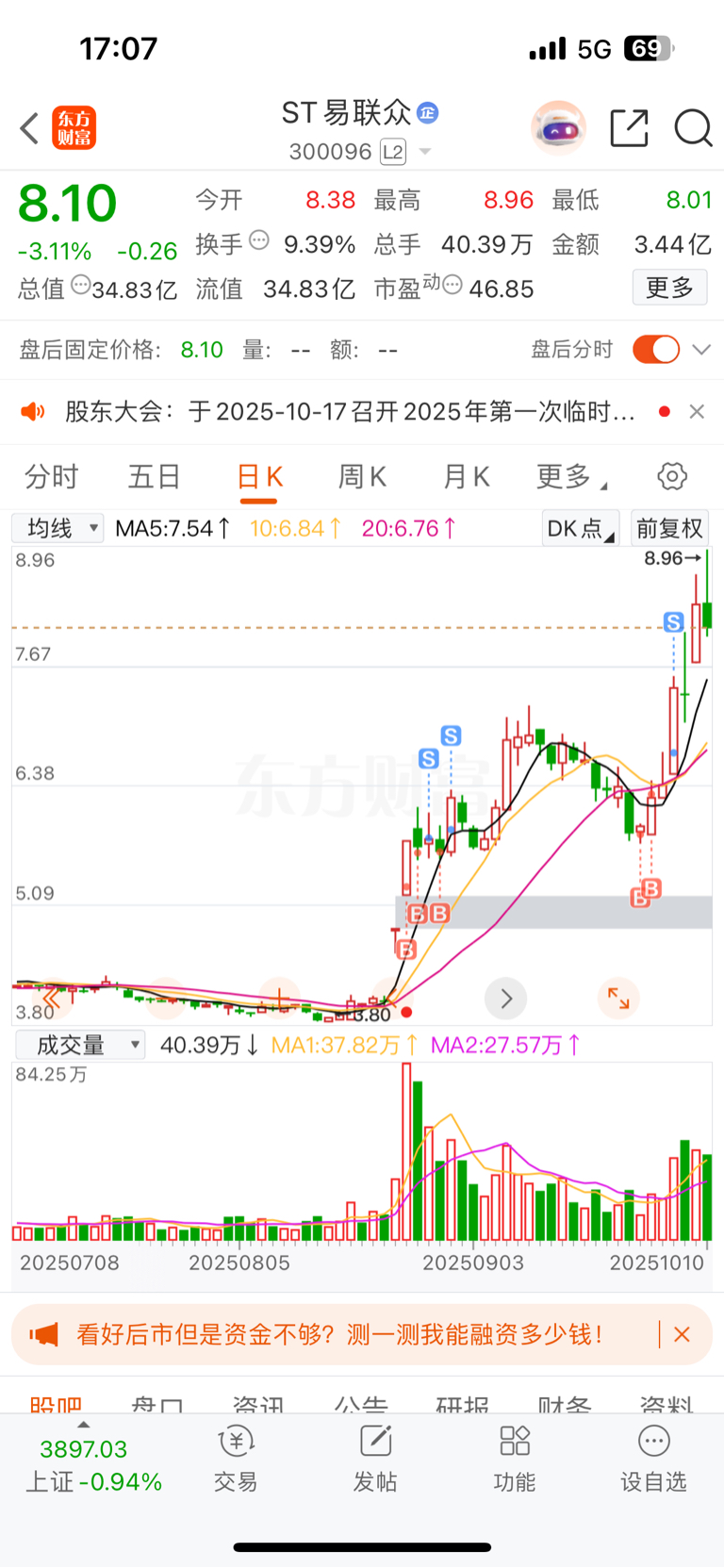 $ST易联众(SZ300096)$ 你的走势,你的点位我看的老准了,可惜就是没有拿住,因为你没有债。我就连你哪个位置洗盘洗到啥程度都看的非常准,我就是把你T飞了,说实话,我真想扇自己几个。