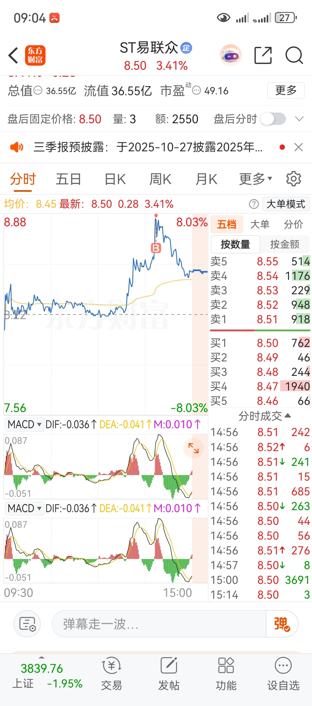 $ST易联众(SZ300096)$ 不冷,我站岗,380w