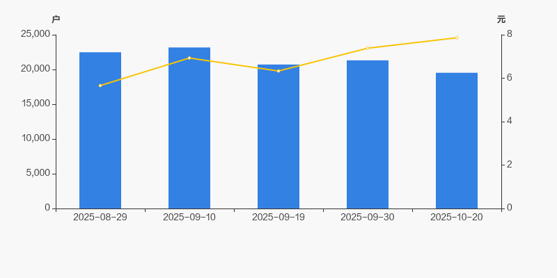 2025年8月29日至今,公司股东户数显著下降,区间跌幅为13.13%。2025年8月29日至2025年10月20日区间股价上涨38.87%。