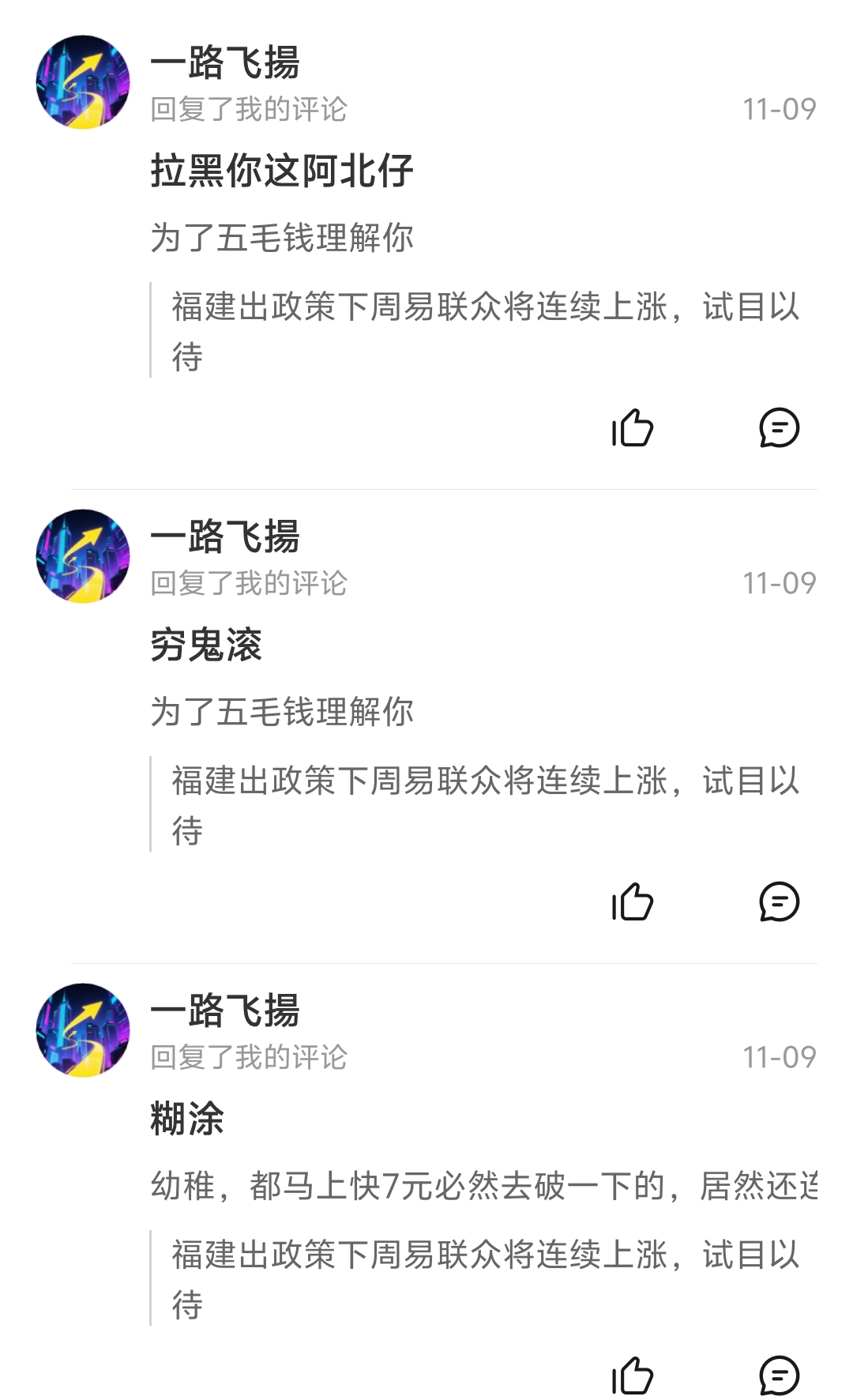 温馨提示: 1.根据《证券法》规定,禁止编造、传播虚假信息或者误导性信息,扰乱证券市场;2.用户在本社区发表的所有资料、言论等仅代表个人观点,与本网站立场无关,不对您构成任何投资建议。用户应基于自己的独立判断,自行决定证券投资并承担相应风险。《东方财富社区管理规定》