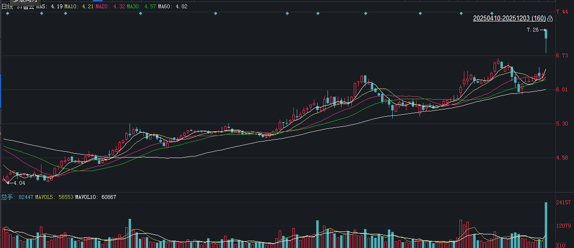 二级市场上,截至12月3日9点35分,ST智云上涨9.49%报6.92元/股,总市值约20.03亿元,今年来公司股价累计上涨约三成。