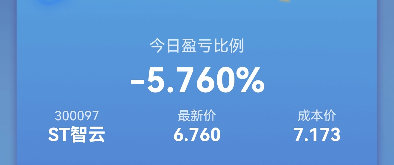 $ST智云(SZ300097)$ 这四分之一仓位应该在我的德龙继续t的。可惜了,今天如果t德龙就神了。太冲动了。