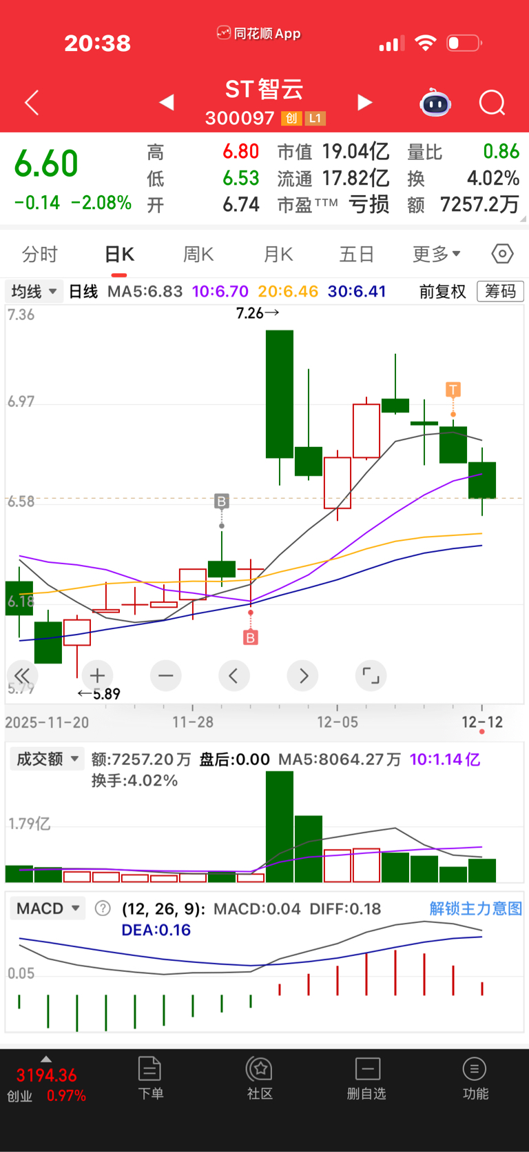 $ST智云(SZ300097)$ 百分之90仓位跑了俩天了,少亏了4个点,接下来慢慢买回来