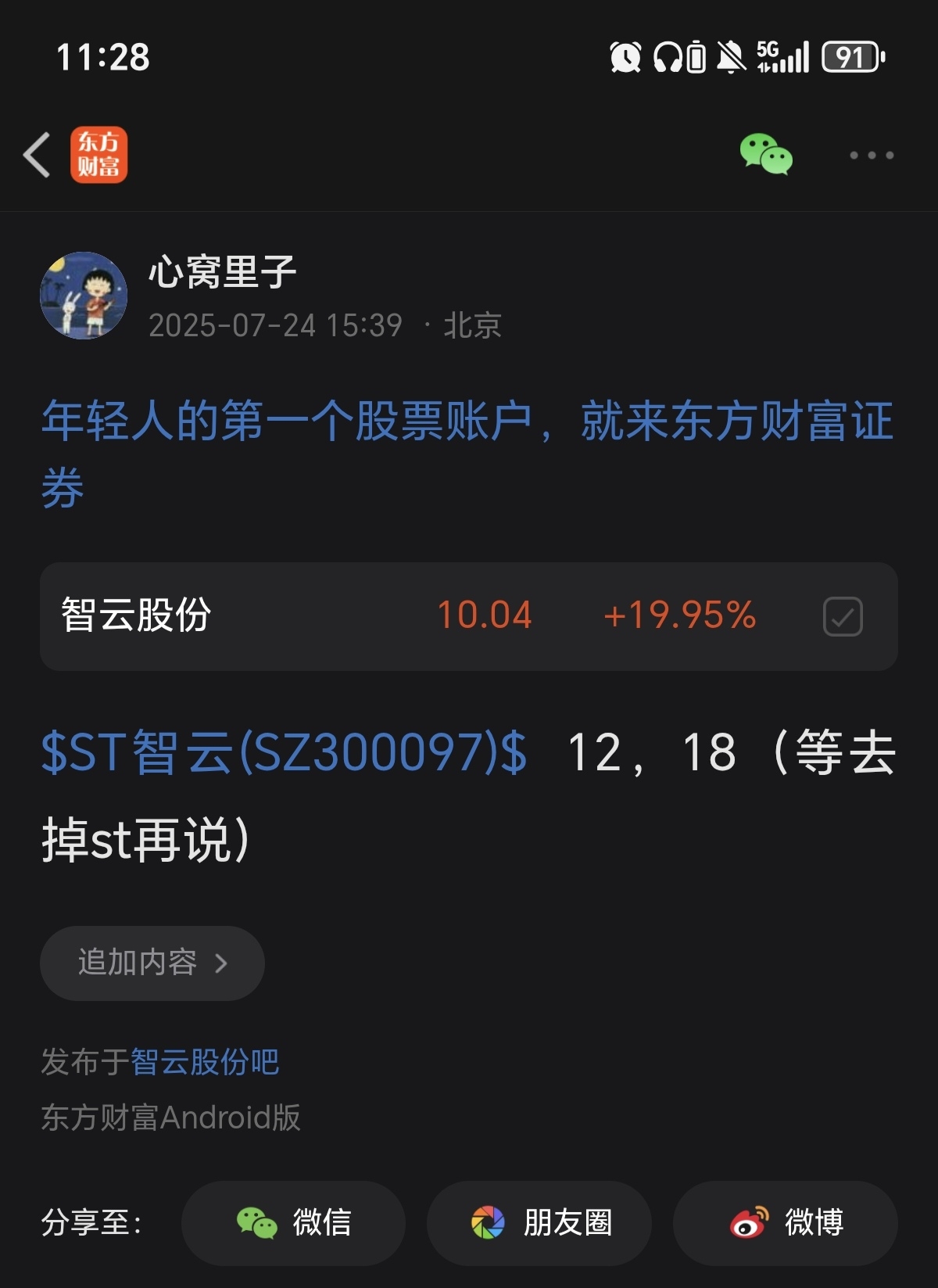 $智云股份(SZ300097)$ 刚去掉st就彪了!