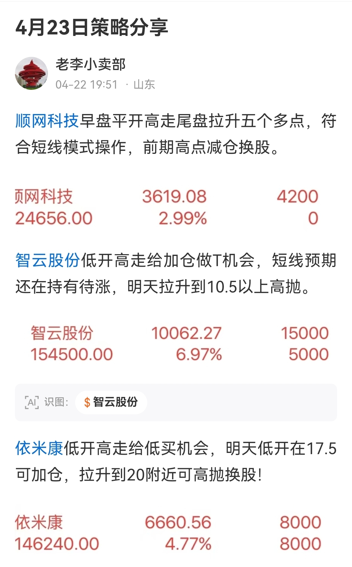 $智云股份(SZ300097)$ 短线预期还在持有待涨,详见23日策略分享及组合变化!