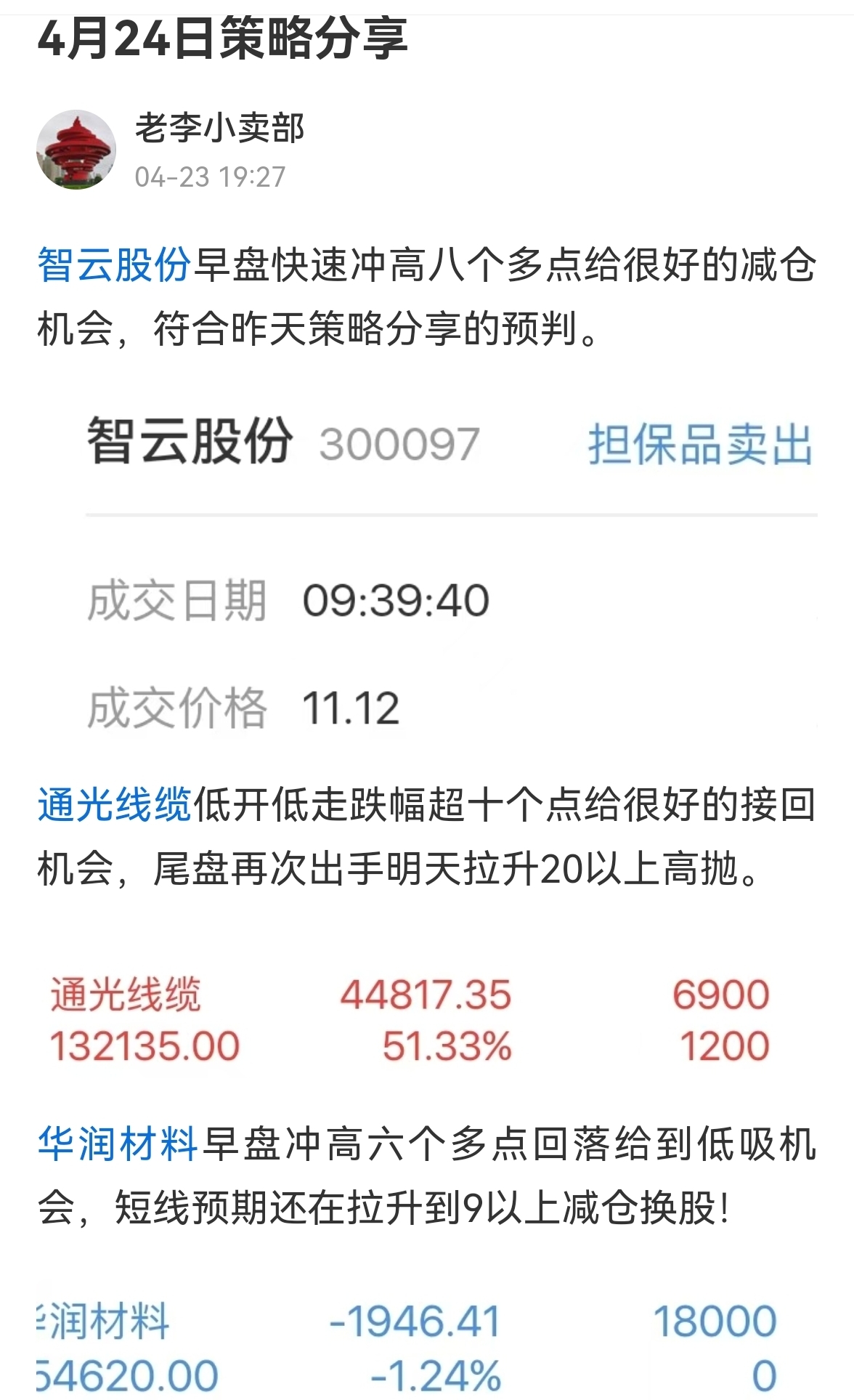 $智云股份(SZ300097)$ 早盘快速拉升给到高抛机会,详见24日策略分享及组合变化!