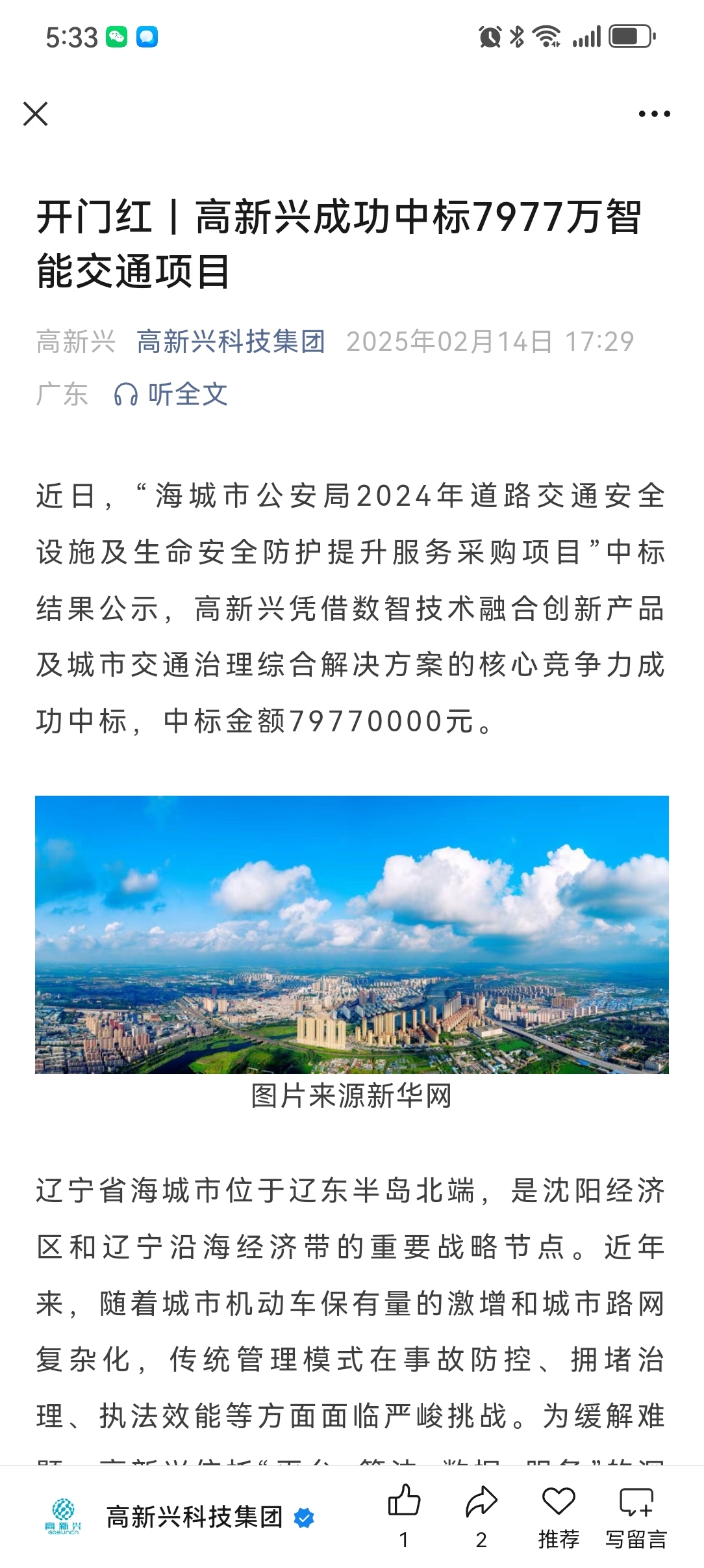 $高新兴(SZ300098)$ 盘后利好