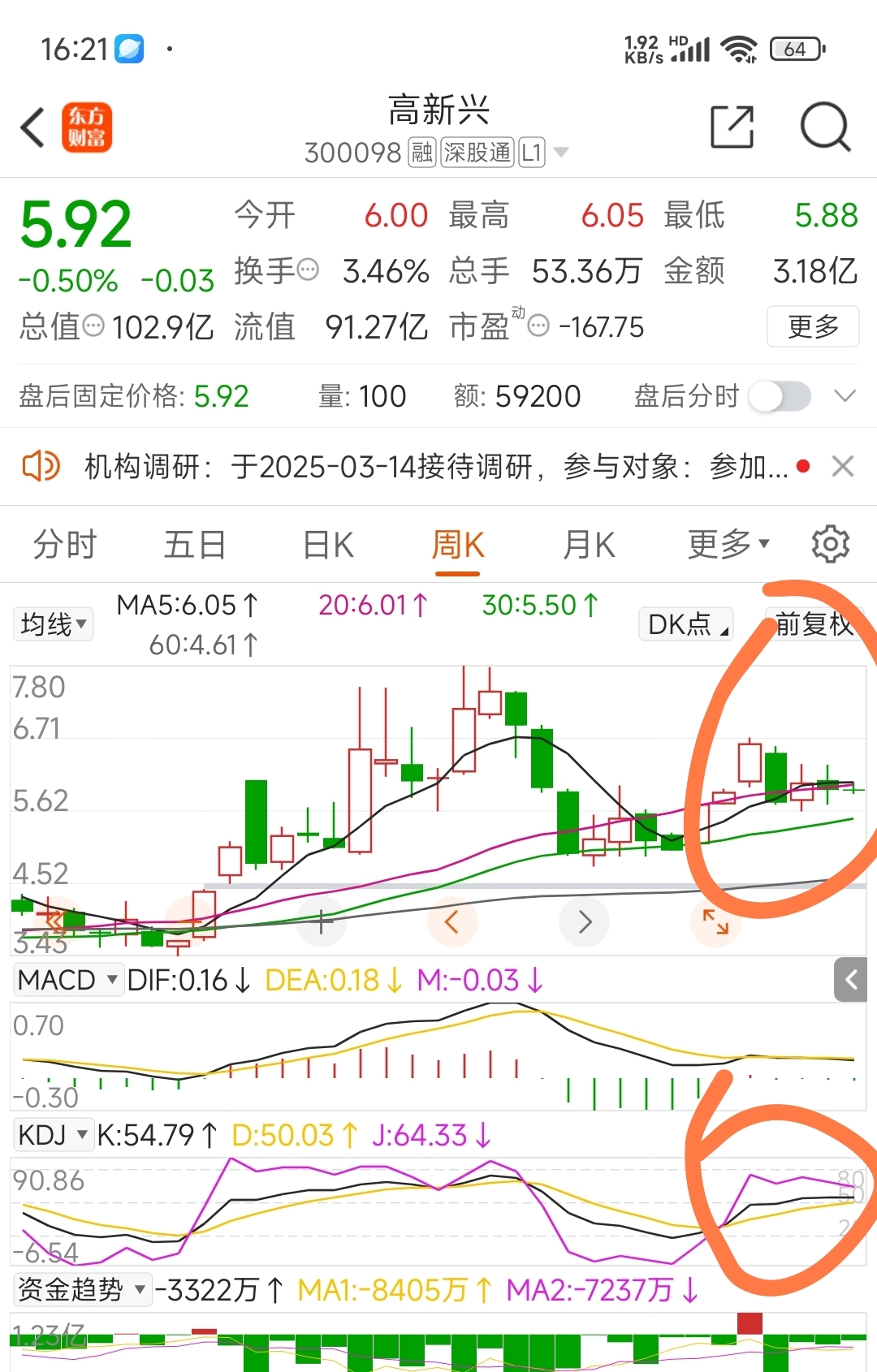 $高新兴(SZ300098)$ 该股连续4周在5日线之下,且红柱无法冒头(说明没有资金介入),周K向下趋势已形成,最少跌3一5周,10个点以上的跌幅,之后不能被st.如果被st就是毁灭性的。有条件调研一下该股基本面。