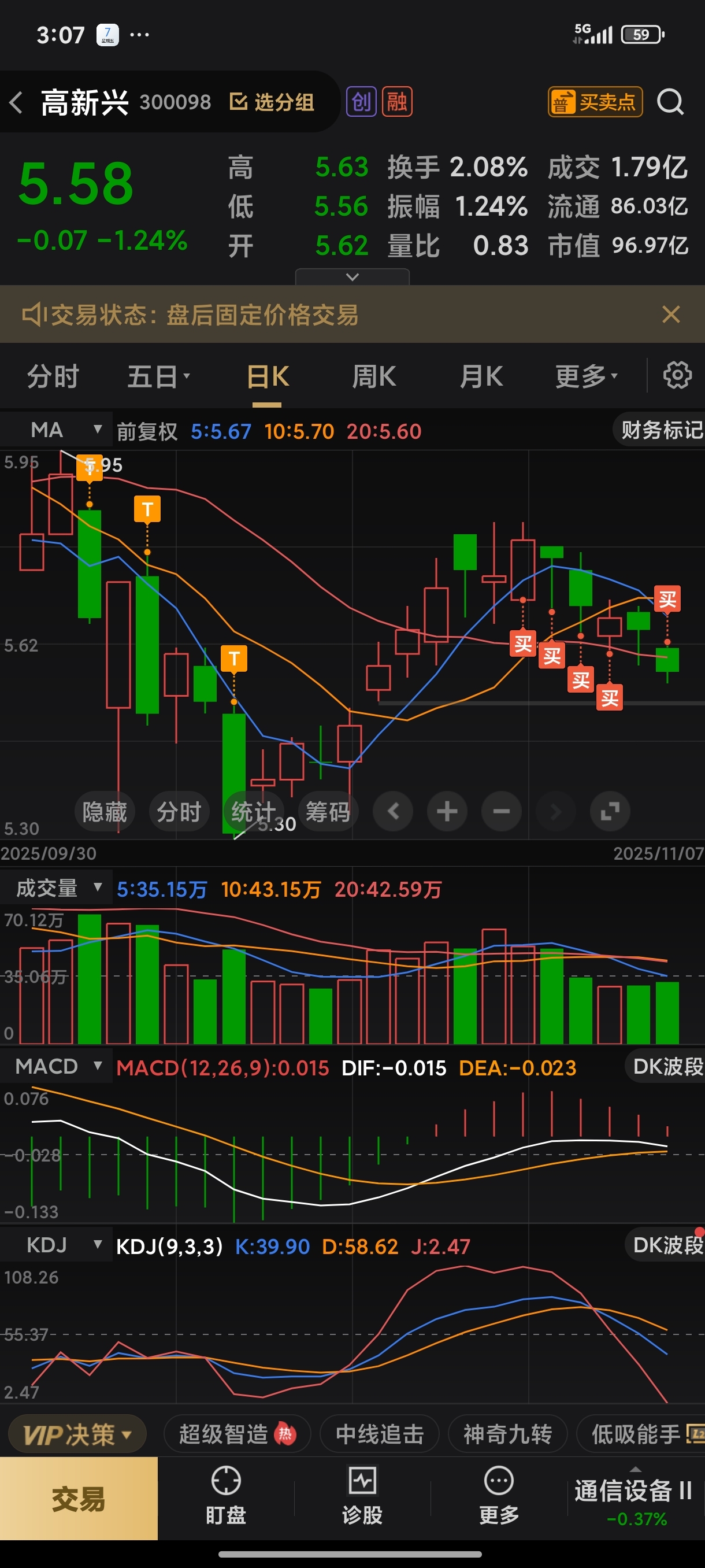 $高新兴(SZ300098)$ 高新兴能干,一星期5个交易全跌,不过,铁头不怕,今天又加,只是不知不觉成本上升到3.15了。315打假日。