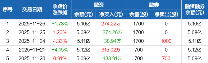 高新兴:融资净买入274.22万元,融资余额5.1亿元(11-26)