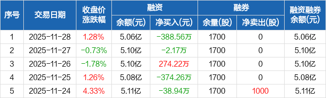 高新兴:融资净偿还388.56万元,融资余额5.06亿元(11-28)