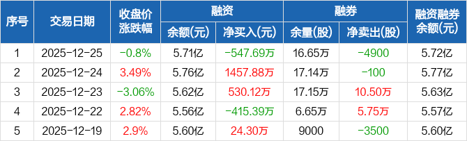 高新兴:融资净偿还547.69万元,融资余额5.71亿元(12-25)