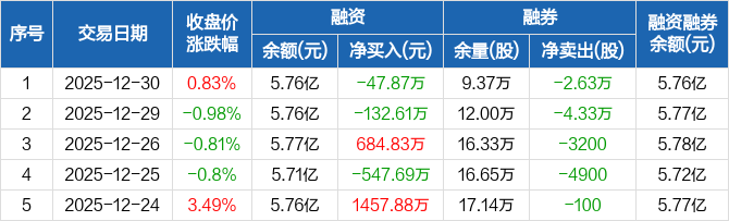 高新兴:融资净偿还47.87万元,融资余额5.76亿元(12-30)