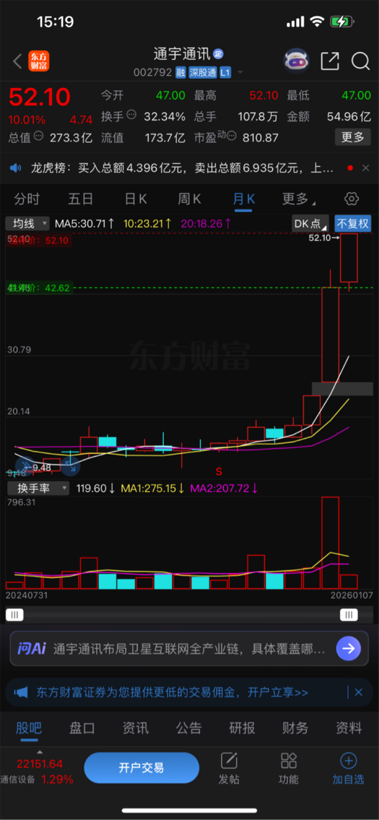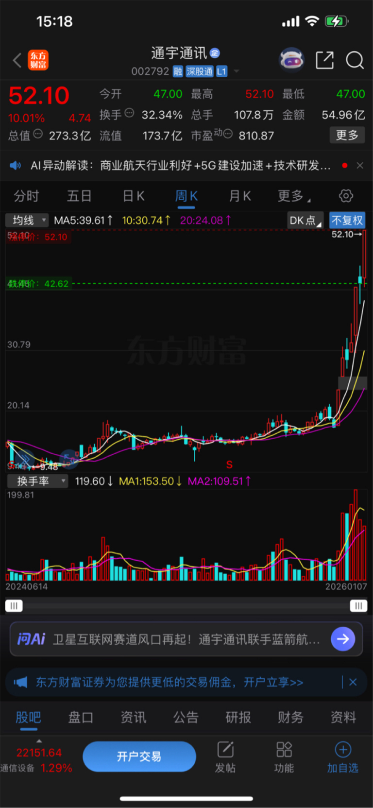 卫星互联网之通宇通讯这名字真的是通向宇宙……9.48涨到今天52多!