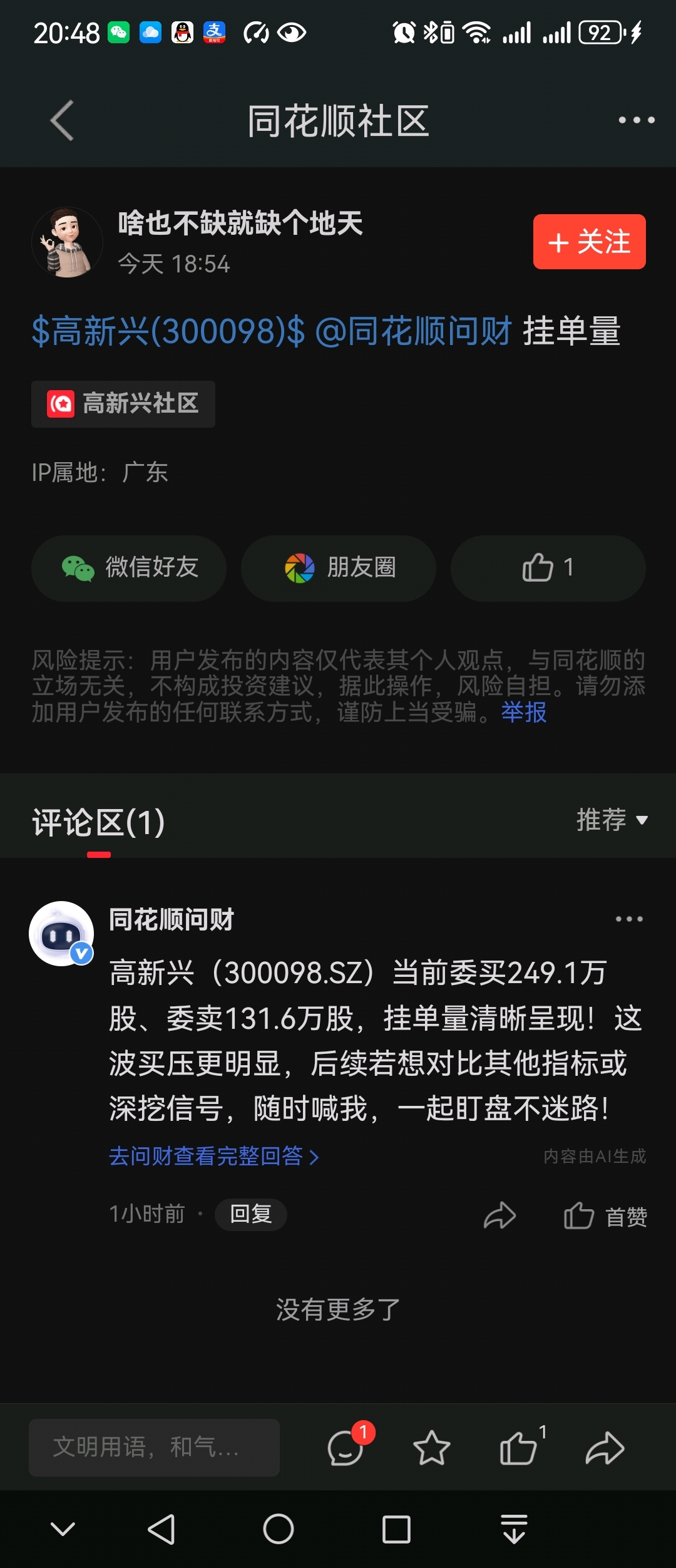 $高新兴(SZ300098)$ 这是啥意思?明天能买到吗