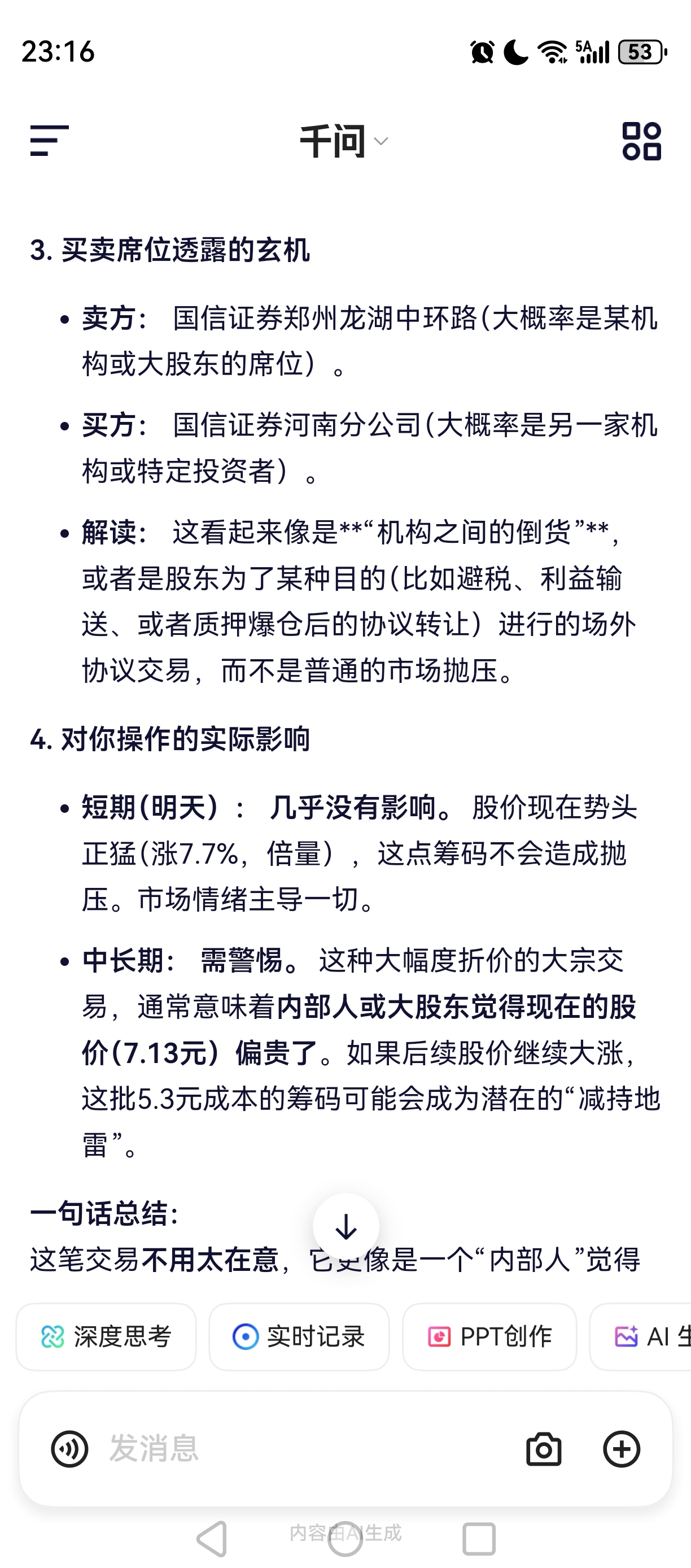 你们担心的大宗交易,千问解读来了,首先我不怕,只要继续放量,继续持有!看下图千问