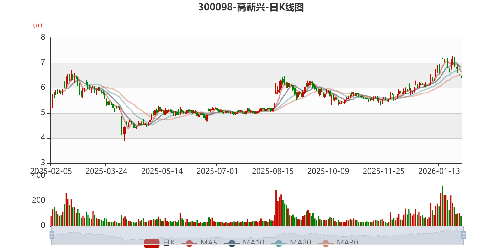 中证智能财讯高新兴(300098)1月30日晚间披露2025年度业绩预告,预计2025年实现营业收入19亿元至21亿元,同比增长34.12%-48.23%;归母净利润亏损1800万元至3600万元,上年同期亏损2.37亿元;扣非净利润亏损4000万元至5800万元,上年同期亏损3.03亿元。以最新收盘价计算,市净率(LF)约4.1倍,市销率(TTM)约5.57倍。