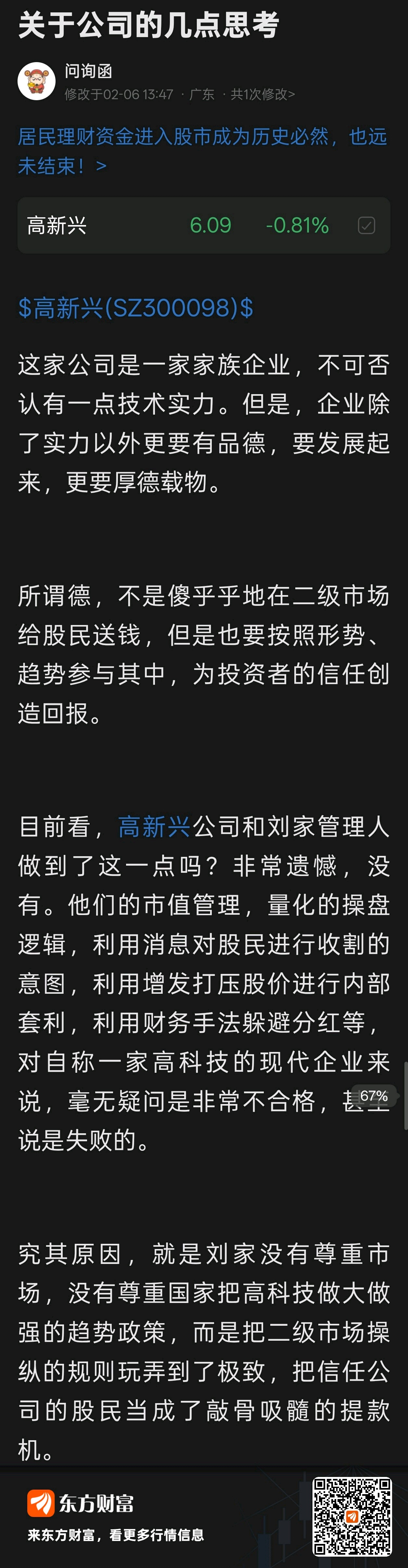 $高新兴(SZ300098)$ 对一个没有品德的家族企业,当舔狗有用吗?