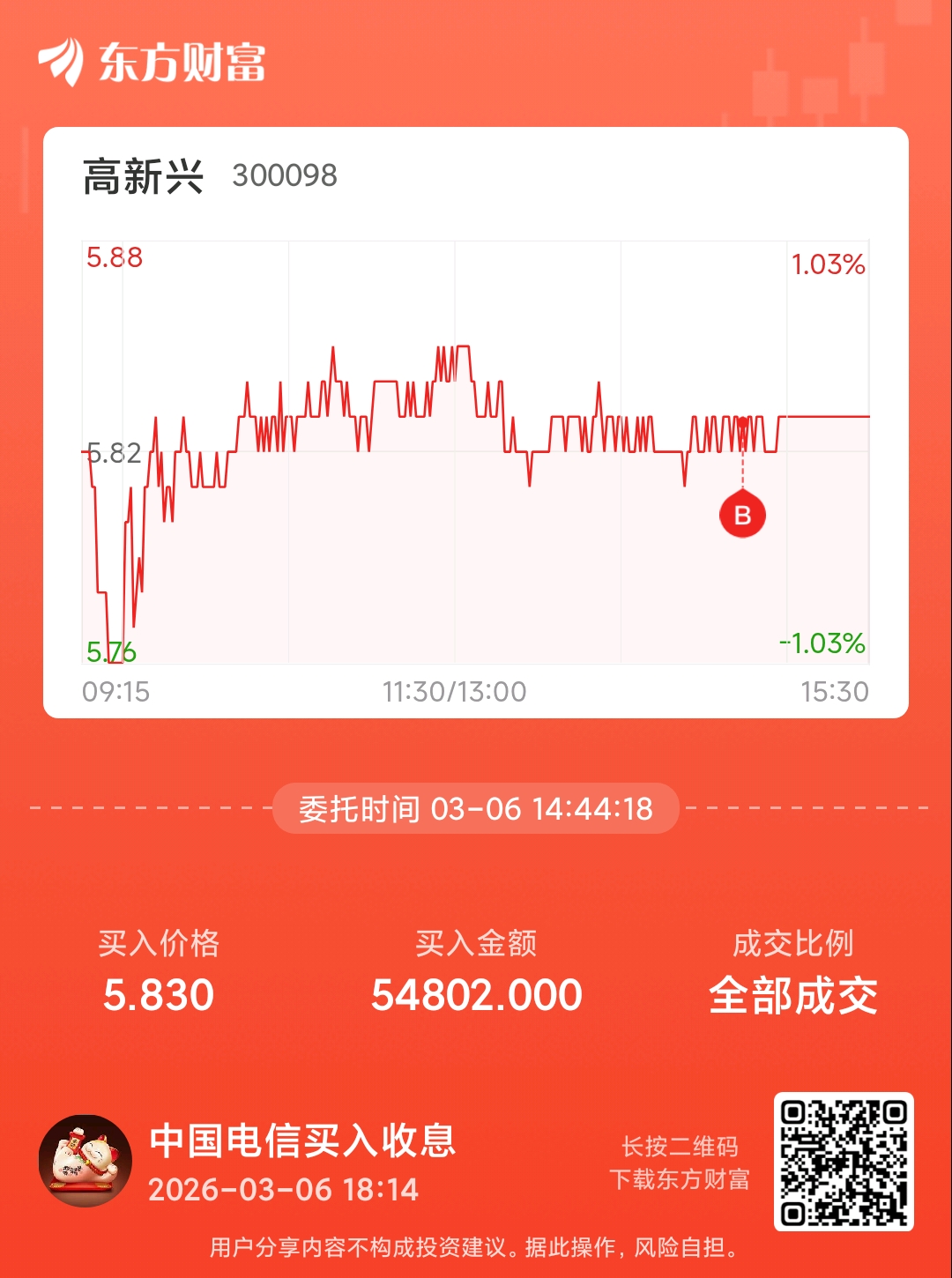 温馨提示: 1.根据《证券法》规定,禁止编造、传播虚假信息或者误导性信息,扰乱证券市场;2.用户在本社区发表的所有资料、言论等仅代表个人观点,与本网站立场无关,不对您构成任何投资建议。用户应基于自己的独立判断,自行决定证券投资并承担相应风险。《东方财富社区管理规定》