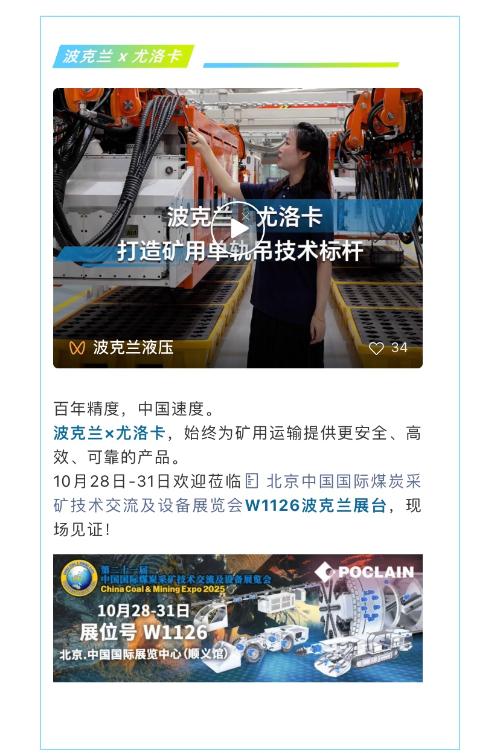 10月28日-31日欢迎莅临北京中国国际煤炭采矿技术交流及设备展览会W1126波克兰展台,现场见证!@财联社 @界面新闻 $上证指数(SH000001)$ 波克兰×尤洛卡,始终为矿用运输提供更安全、高效、可靠的产品。